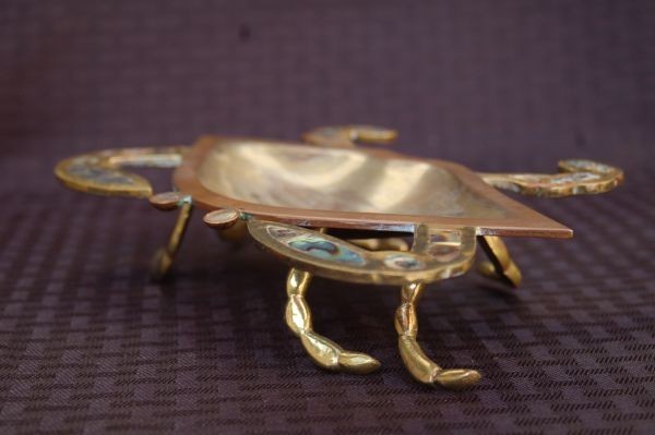 年代 :1960's前後 サイズ :高さ 4.7cm x 縦幅 14cm x 横幅 21.5cm x 奥域 素材 :銅の上にシルバープレート加工/真鍮/アバロンシェル 重さ :約 393g 製造国 :メキシコ 工房 :LOS CASTILLO アメリカで買い付けたビンテージ、小物ホルダーのご紹介になります。 ユニークな蟹のデザインで手足にはアバロンシェルが埋め込まれており メキシコらしい手の込んだクオリティーの高い作品となっております。 比較的に綺麗な状態で残っており、破損はございません。 オシャレなコレクションアイテムとしてお楽しみ頂けます。 出品している全ての商品は古い物のため細かいキズや使用感はありますので ビンテージ品として理解頂ける方のみ入札下さい。 他にも世界のアンティーク雑貨等、多数出品しておりますので宜しければ マイオークションからご覧ください ↓↓↓ ![]() サイズは出来る限り正確に測っておりますが、多少の誤差はご了承ください。 写真をしっかりとご確認の上、入札して下さい。 (神経質な方はご遠慮下さい) 質問などありましたらお気軽に問い合わせ下さい。 尚、細かい写真など詳細をご希望の方は拡大写真を送りますので、質問欄にご希望の旨とメールアドレスをお載せ下さい。 (ご質問内容は公開される事はございません。ご安心下さい)  | |||