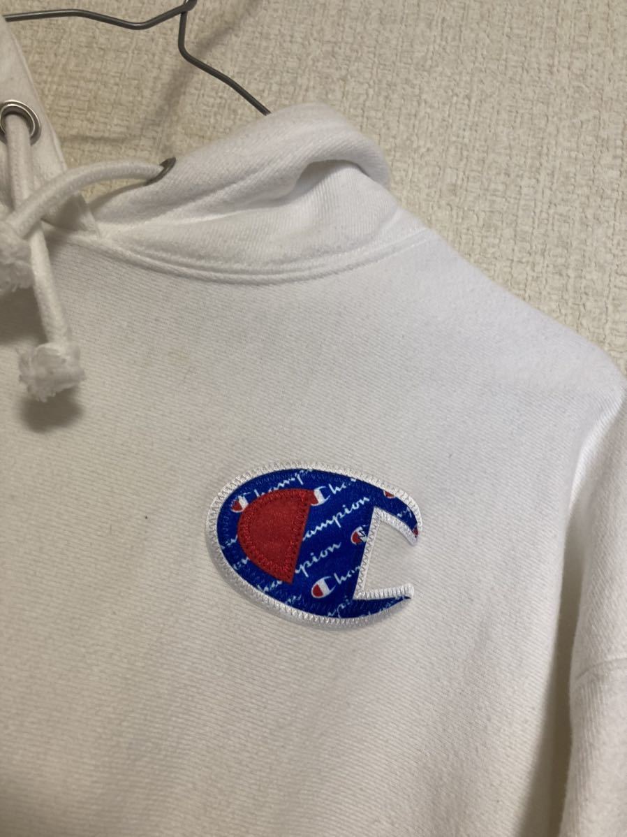 | チャンピオン リバースウィーブの青タグ パーカーです。 |