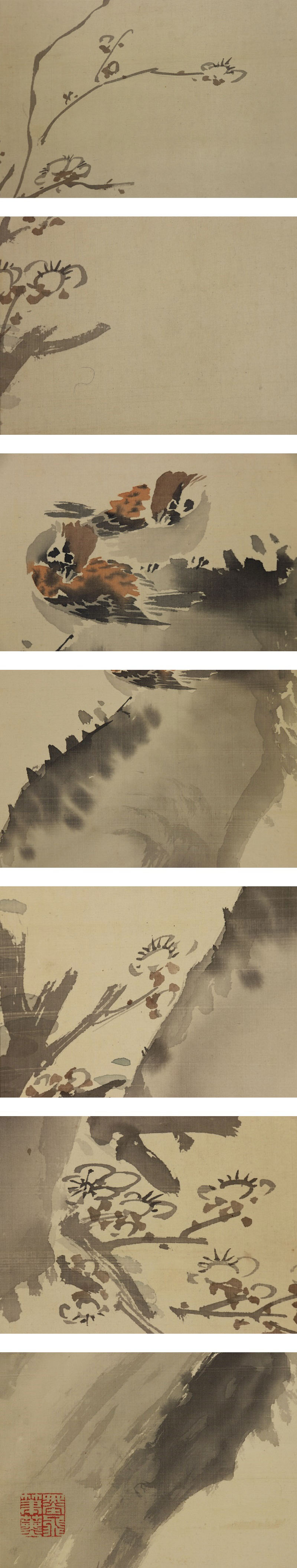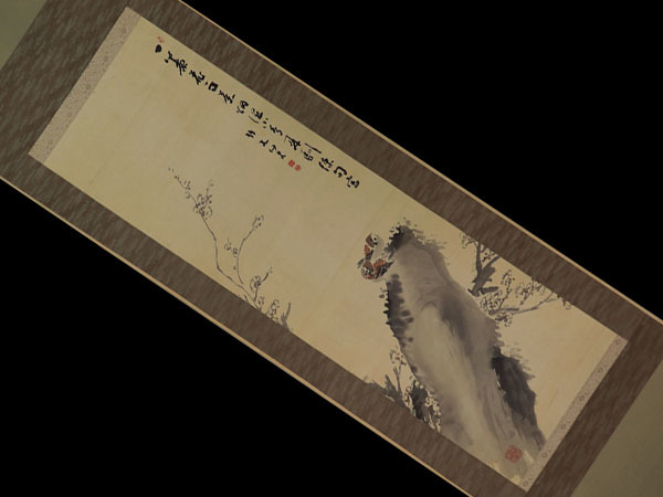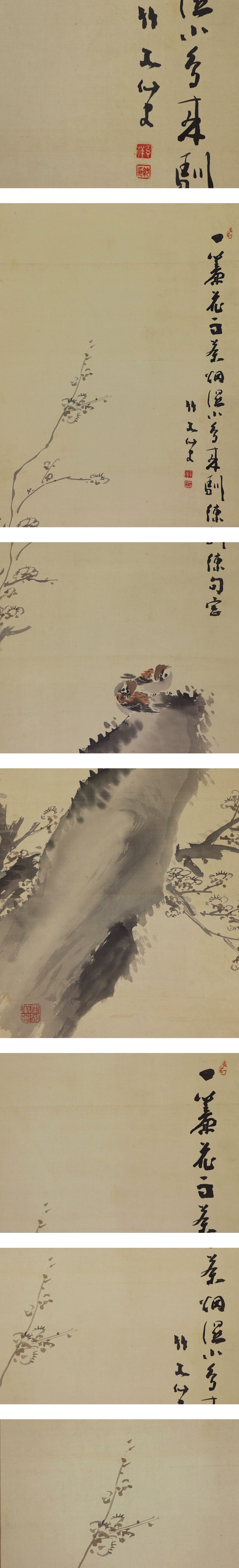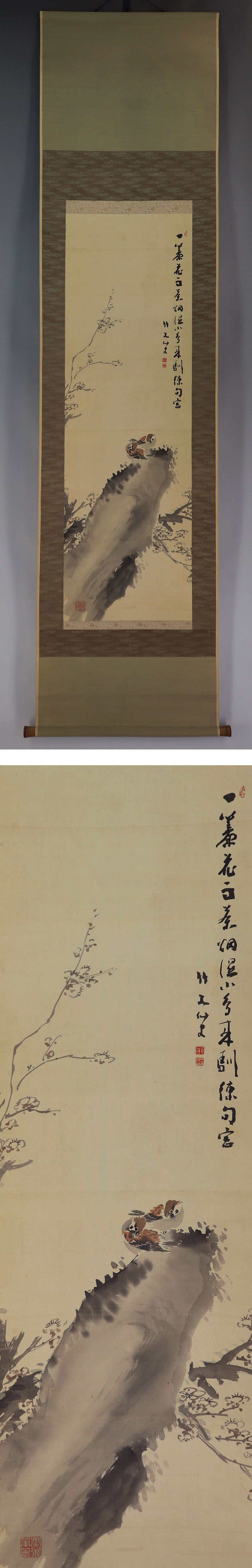 | №2101018【真作】姫島竹外【白梅双雀図】◆絹本◆識箱◆掛軸 | |