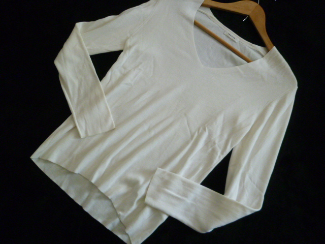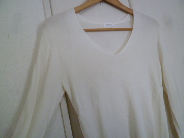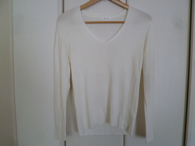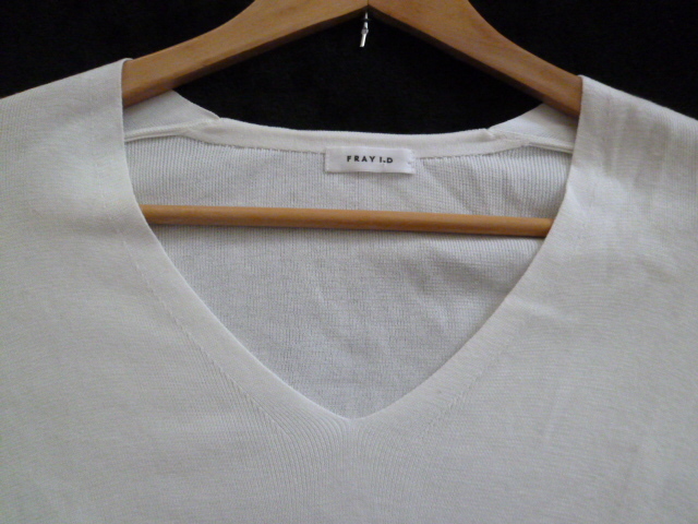 FRAY I.D/フレイアイディー△白Vネック薄手シンプルニットF/長袖トップスプルオーバーホワイトマッシュスタイルラボ△Bo32