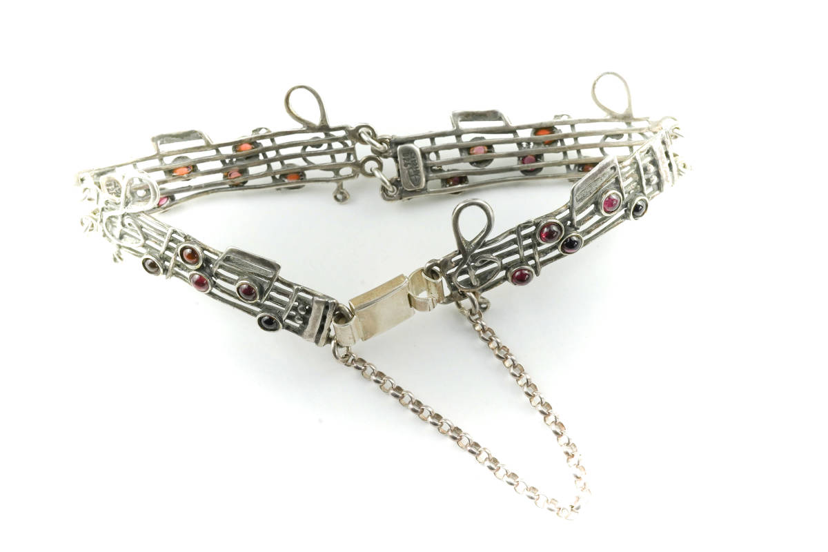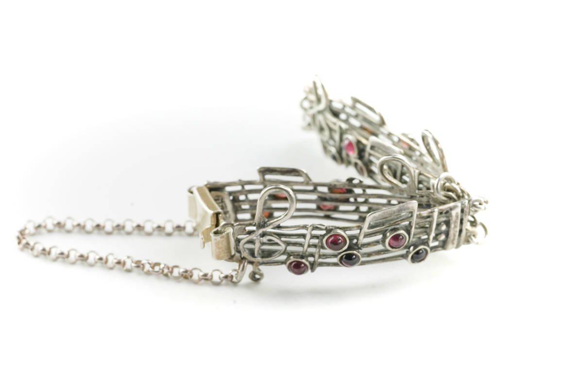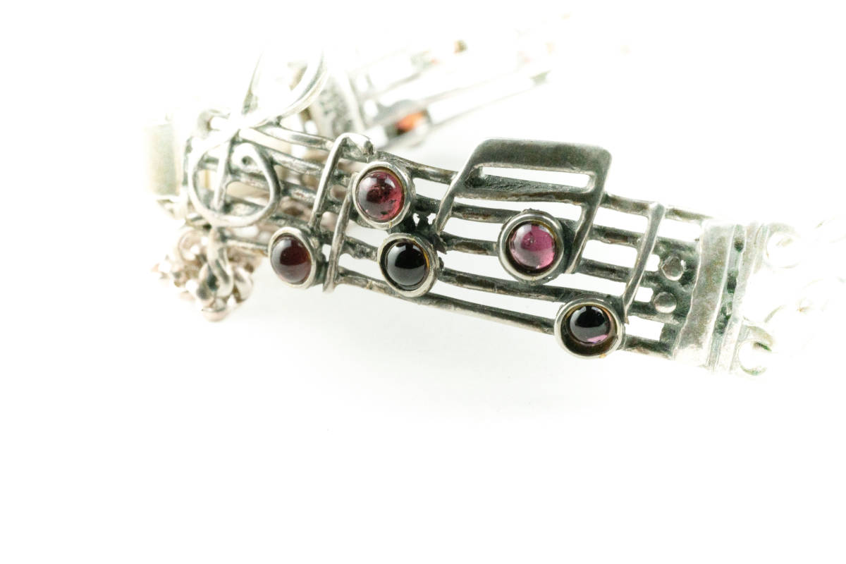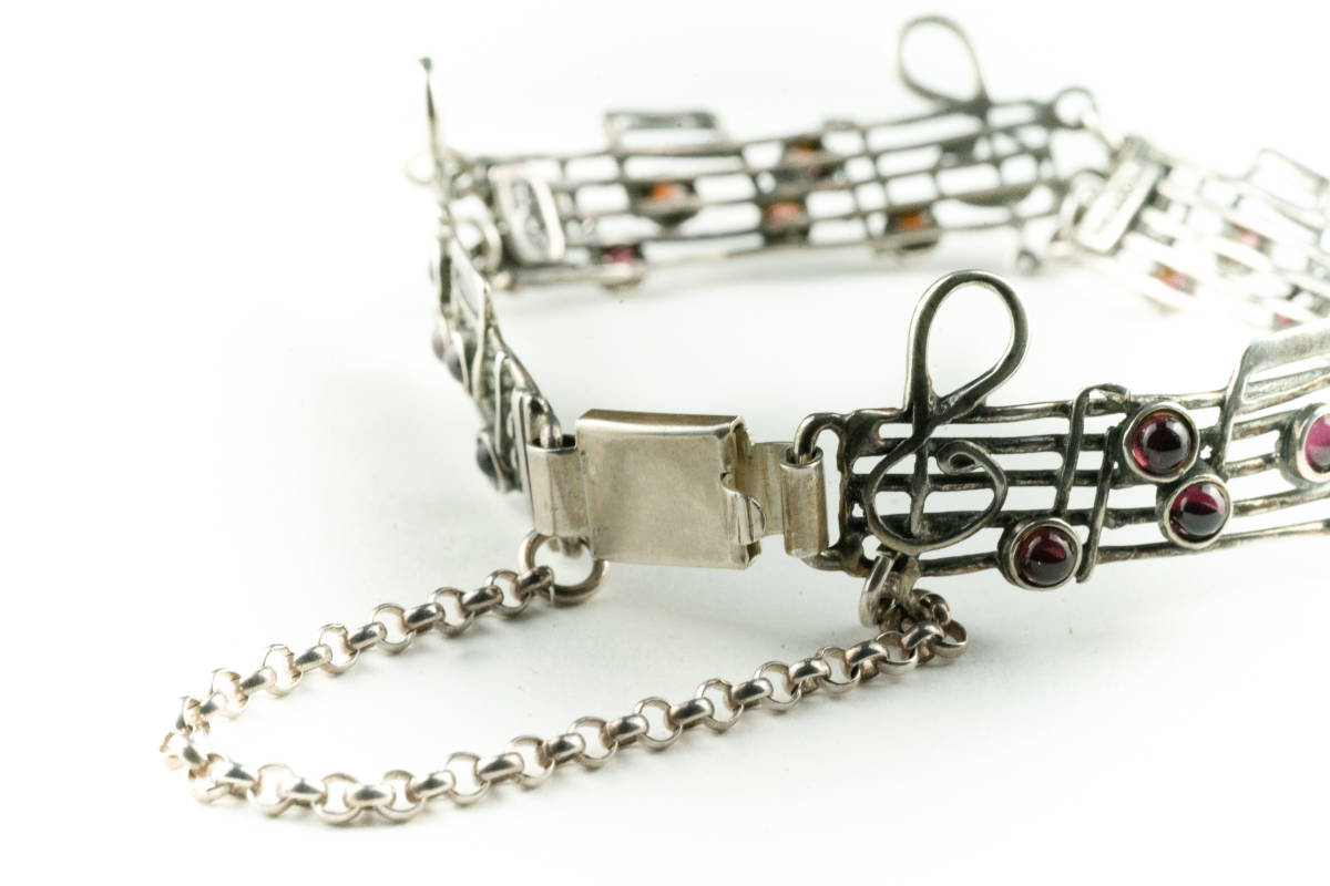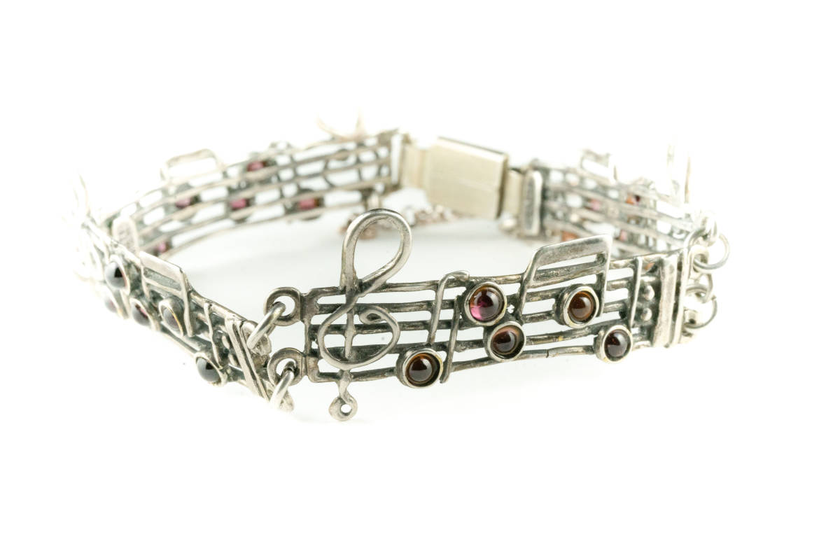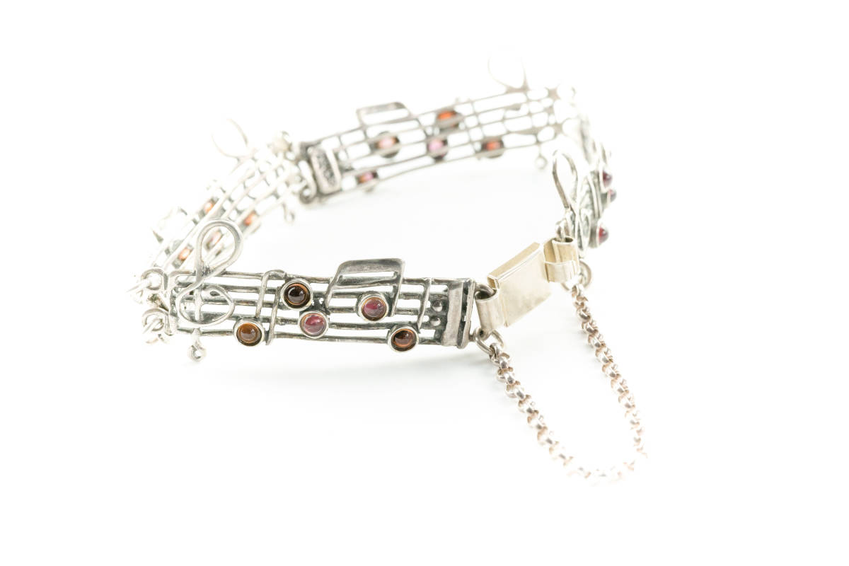 シルバー/ガラス/ブレスレット/音符モチーフでございます