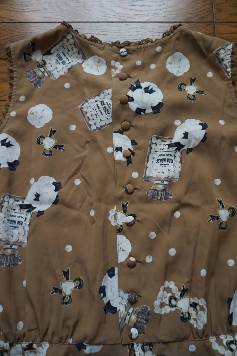 *◇ PINK HOUSE ピンクハウス ◇  パールスノー セットアップ ◇ size 4 ( L ) です。  畳ジワ・毛羽立ちが多少あります。