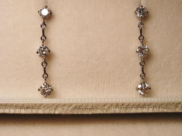 輝きも充分素晴らしい大満足のトリロジ―ダイヤピアス!