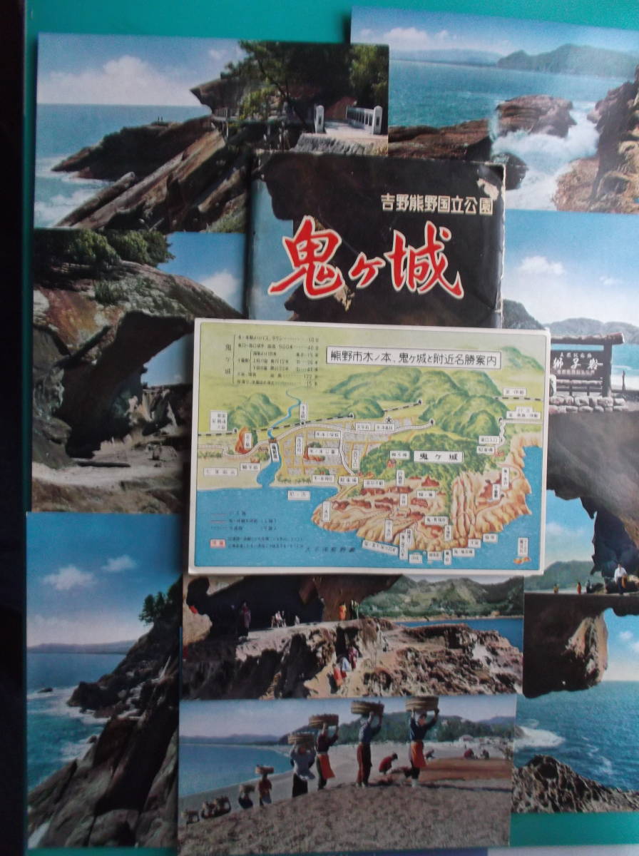 ⑨組 熊野木ノ本鬼が城 千畳敷 七里御浜 洞窟より水谷を見る 鬼の見張り場 獅子巌 汐吹き 断崖 西口一ノ木戸 犬戻・猿戻 鬼が城付近名勝案内図
