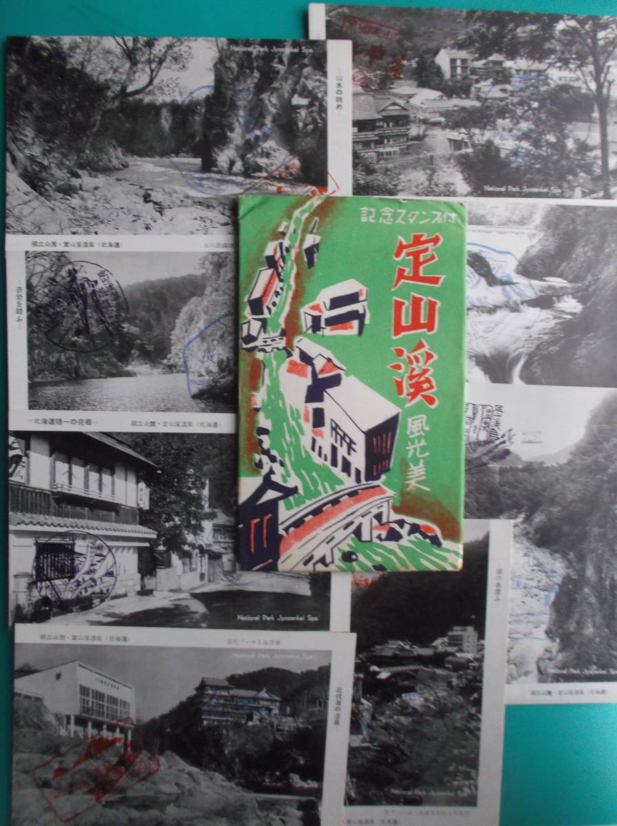 ⑥組 定山渓風光美 豊平川と月見橋 吊り篭渡し 銚子の口瀧 温泉の展望 温泉プールと五層楼 月見橋付近の温泉街 二見岩 玉川遊園地付近の美観