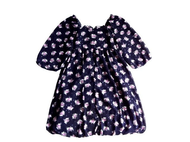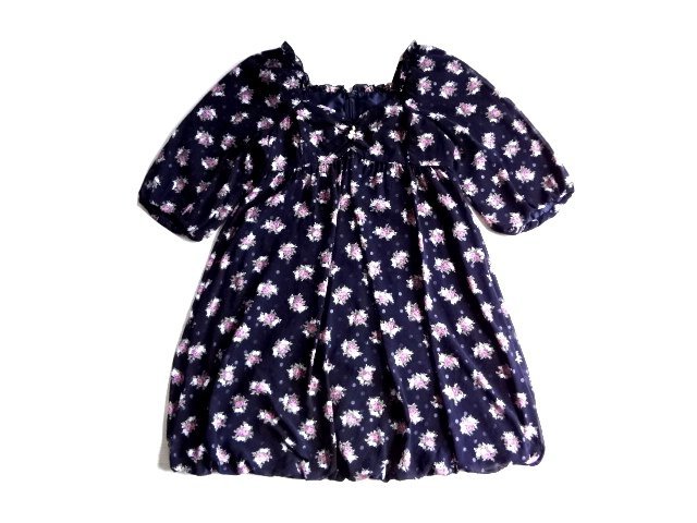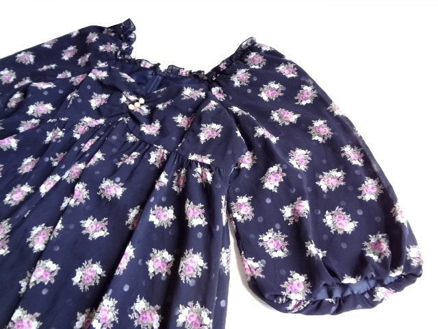 ジョイアス joias 紺 花柄 ドット シフォン バルーン ワンピース 2