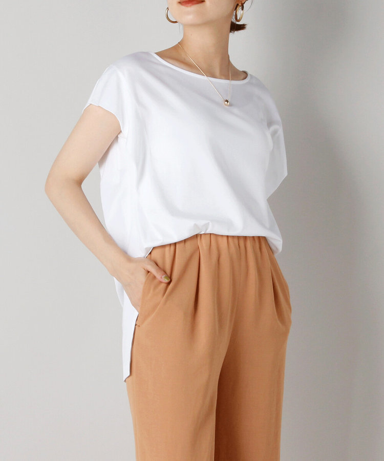 NOLLEY'S Sophi ノーリーズソフィー タックショートスリーブ プルオーバーカットソー 白 サイズ36