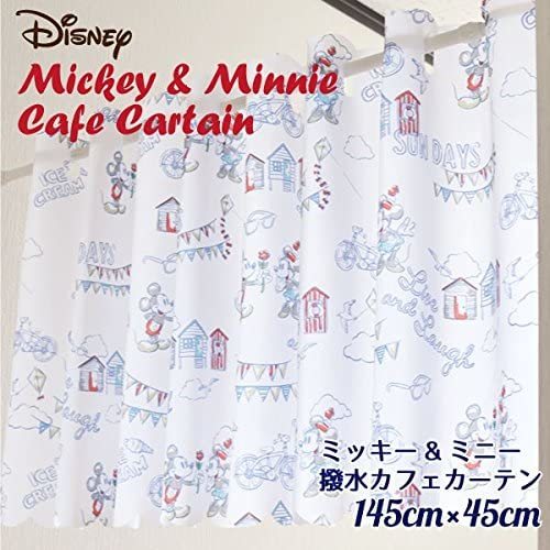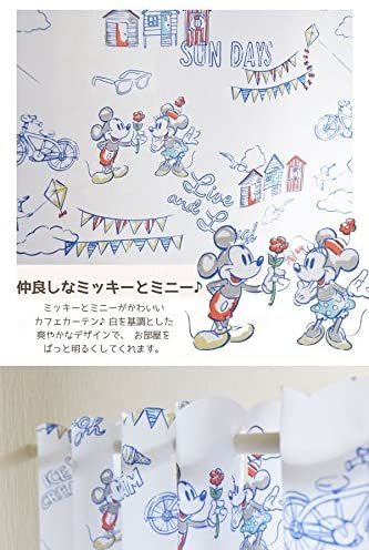 新品 【ハッスイ機能付きカフェカーテン】ミッキー&ミニ 45x145cm