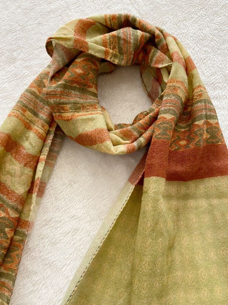 Paolo Tabatini イタリア製ロングストール ウール プリント パオロタバティーニ グリーン