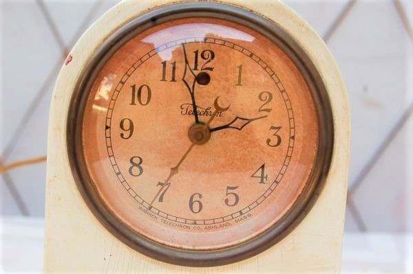 年代 :1925s辺り(表記あり) サイズ :高さ 16cm x 横幅 15cm x 奥域 11.5cm / コード長さ 196cm 素材 :木製、メタル、真鍮 重さ :約 1.4kg 製造会社 :WARREN TELECHRON CO 製造国 :アメリカ 動作 :確認済み アメリカで買い付けたコンセント式の置時計のご紹介になります。 Telechron社は1912年、米国マサチューセッツ州創業の電気時計メーカーです。 古い時代の置時計になり、アンティークな良い雰囲気があります。 古い物ですが、比較的に綺麗な状態で残っており、破損はございません。 オシャレなお部屋のインテリアとしてお楽しみ頂けます。 全ての商品は古い物のため細かいキズや使用感はありますので アンティーク品として理解頂ける方のみ入札下さい。 他にも世界のアンティーク雑貨等、多数出品しておりますので宜しければ マイオークションからご覧ください ↓↓↓ サイズは出来る限り正確に測っておりますが、多少の誤差はご了承ください。 写真をしっかりとご確認の上、入札して下さい。 (神経質な方はご遠慮下さい) 質問などありましたらお気軽に問い合わせ下さい。 尚、細かい写真など詳細をご希望の方は拡大写真を送りますので、質問欄にご希望の旨とメールアドレスをお載せ下さい。 (ご質問内容は公開される事はございません。ご安心下さい) | |||