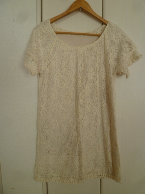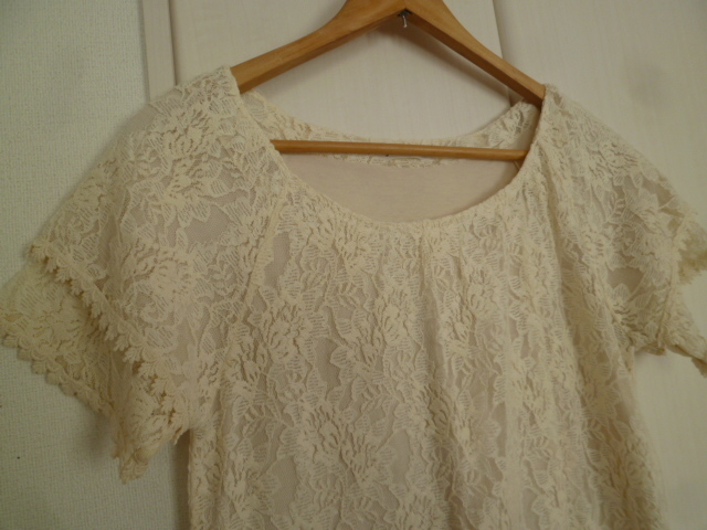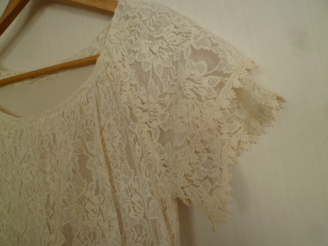 Alphabet's alphabet/アルファベッツアルファベット△オフホワイト総レースワンピースF/膝丈半袖△28