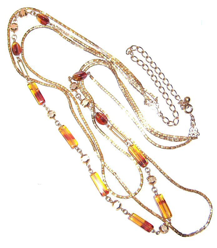 ブラウンストーン×ゴールドチェーン・3連・ロング★ネックレス