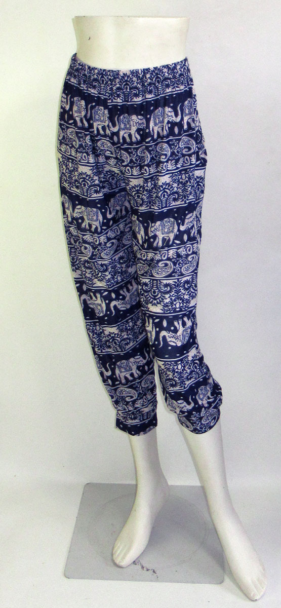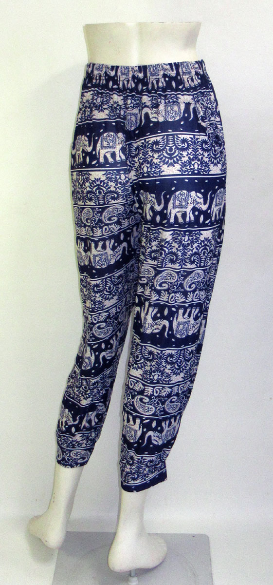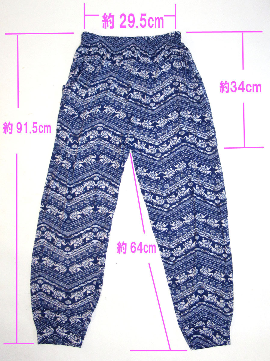夏はやっぱりエスニック!いかにもタイ!といった感じの象や幾何学模様がプリントされた、ヒッピーテイストなレディース・エスニックパンツです。