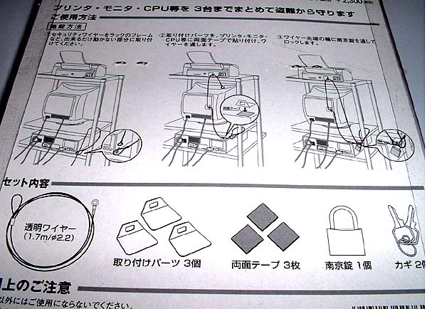 内容はワイヤー1.7m、取付パーツ3個、錠、カギ2個。