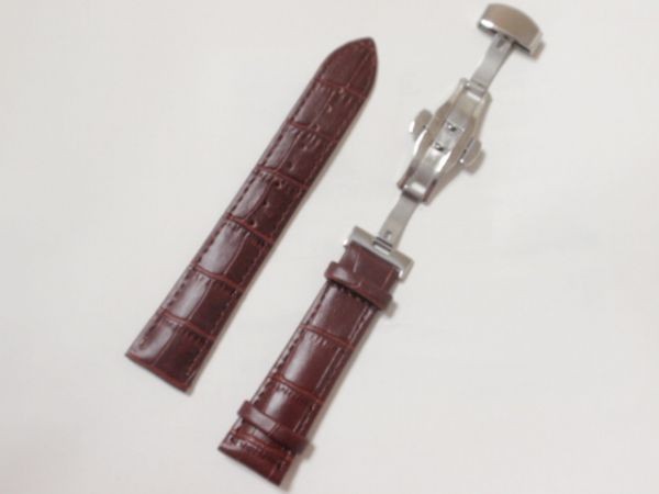 送料無料 腕時計 交換用ベルト クロコダイル型押し 牛本皮バンド 茶 18mm