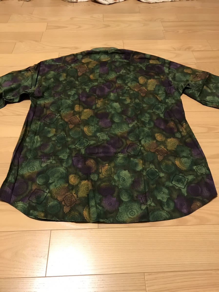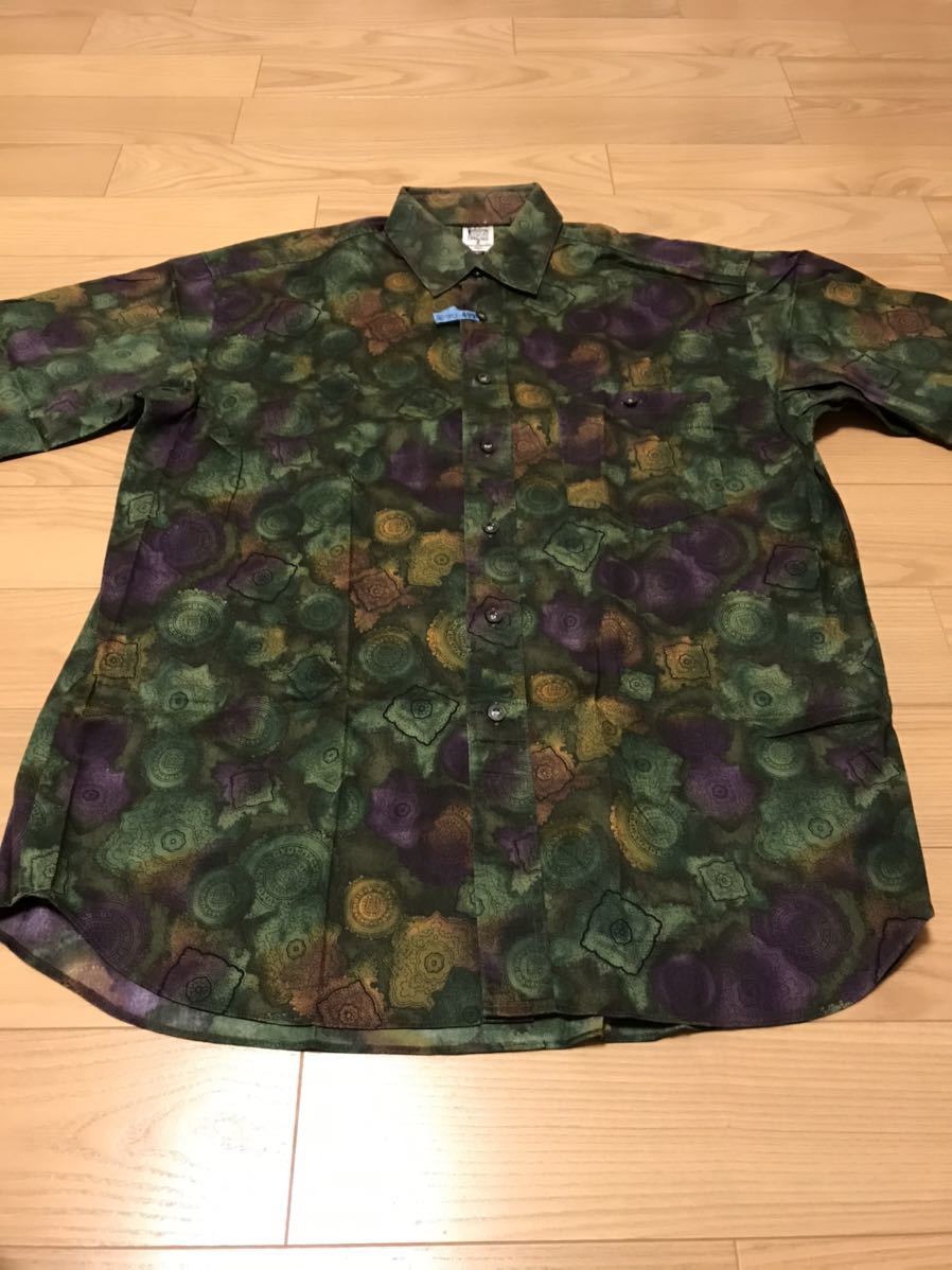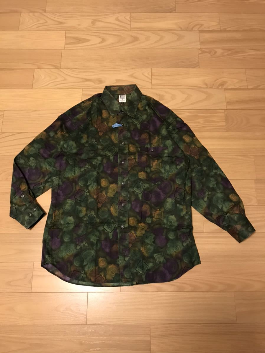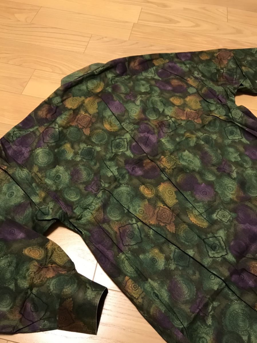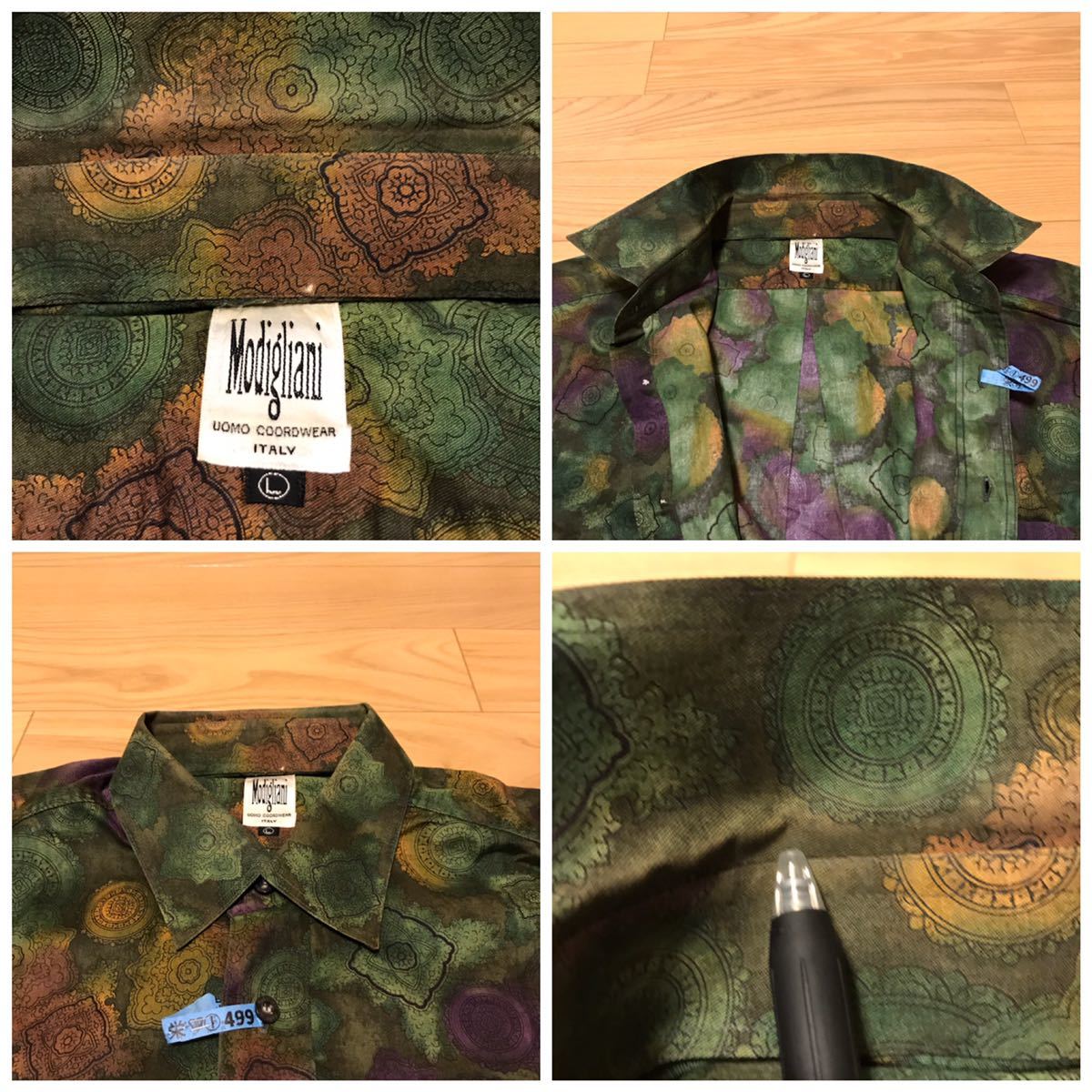 個性的古着☆90s Modigliani UOMO ITALY/メンズオーバーサイズL タイダイ後染め薄手生地・長袖シャツ ダマスク総柄 オーバーダイムラ染め