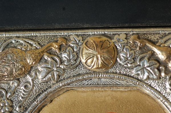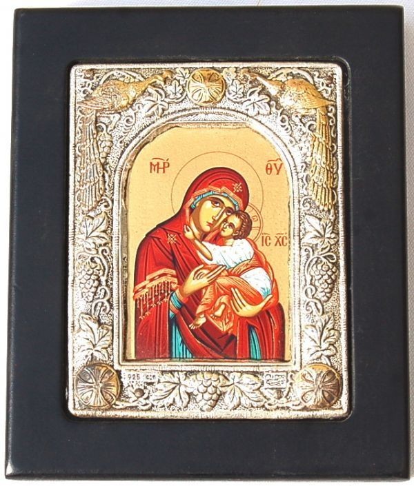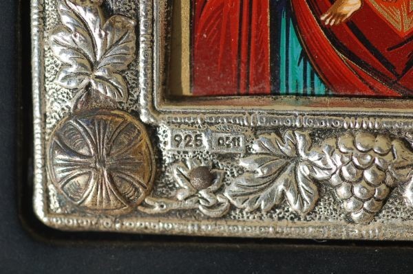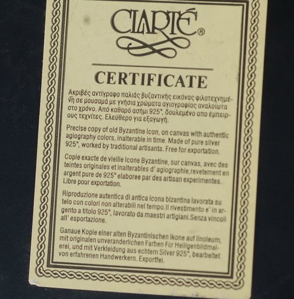 | 年代 :1970's前後 サイズ :縦 12cm x 横幅 10cm x 厚み 1.8cm 素材 :ハンドペイント、スターリングシルバー(銀925) 重さ :約 95g(銀45g) ブランド :CLARTE 製造国 :ギリシャ アメリカで買い付けたビンテージ、ウォールアートのご紹介になります。 神話ビザンティンをコピーした、70年物のアーティスト作品になります。 聖母マリアとジーザスベイビーの風景が描かれています。 アーティストによる工芸品となっており、薄いスターリングシルバーのプレートを ハンマーで叩いて、高級感のある装飾模様が施されております。 内側のカラーの部分はハンドペイントとなっております。 細かい細工、ハンドペイントは非常にクオリティーの高い仕上がりとなっております。 比較的に綺麗な状態で残っており、破損はございません。 お部屋のコレクションアイテムとしてお楽しみ頂けます。 全ての商品は古い物のため細かいキズや使用感はありますので アンティーク品として理解頂ける方のみ入札下さい。 サイズは出来る限り正確に測っておりますが、多少の誤差はご了承ください。 写真をしっかりとご確認の上、入札して下さい。 (神経質な方はご遠慮下さい) 質問などありましたらお気軽に問い合わせ下さい。 尚、細かい写真など詳細をご希望の方は拡大写真を送りますので、質問欄にご希望の旨とメールアドレスをお載せ下さい。 (ご質問内容は公開される事はございません。ご安心下さい) | |||