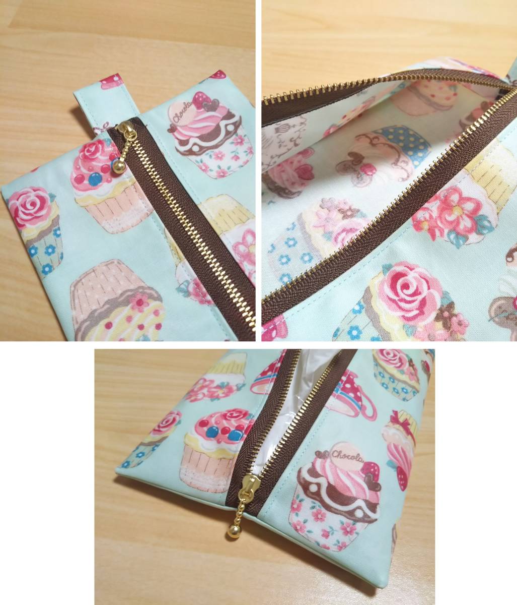 <状態> ラミネート加工した新品の生地とファスナーで作成
