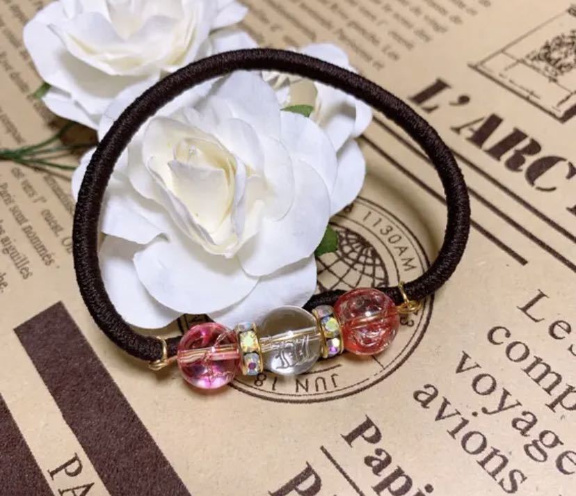 ◇美麗◇天然石ヘアゴム◇水晶×レッドクラック&ピンククラック水晶◇レディース◇パワーストーン◇