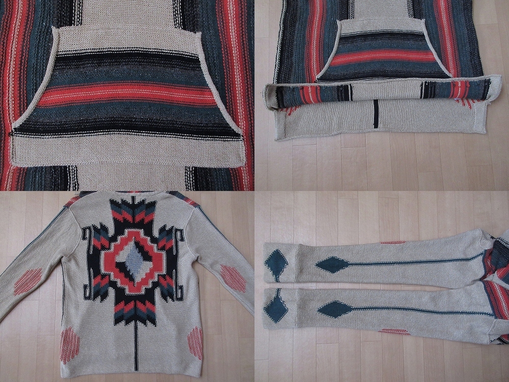 1968年創業の、ブリティッシュマインドの中に、旧き良き時代のアメリカンカジュアル、アウトドア、ミリタリー等の様々なジャンルの要素を織り込みながらも、独自の品の溢れる世界間と高品質な作りから、本国アメリカだけに留まらず、世界各地にフォロワーが存在する、アメリカンカジュアル界のパイオニアにして、キングオブキングス、「Ralph LAUREN(ラルフ・ローレン)」氏と、妻である「Ricky LAUREN(リッキー・ ローレン)」さんの頭文字を取って名付けられた、コロラド州に所有する牧場の名前を使用して、1993年に設立された、旧き良き時代のワーク、ミリタリー、マリン、ウエスタン等のヴィンテージクロージングをベースに、上質な素材を使用し、細部まで拘り抜いたウェアの作りに定評のある、〔RRL(ダブルアールエル)〕の、メキシカンパーカー(Mexican Parka)裏面に、旧き良き時代の「メキシカンラグ(Mexican Rug(ラグマット/Rug Mat)」、「ヴィンテージ・ブランケット(Vintage Blanket)」、「ネイティブ(Native)」カルチャーへのオマージュを感じさせる「ネイティブ模様(Native Pattern)」、左右の袖(腕)に、旧き良き時代の「ネイティブ(Native)」カルチャー、「インディアン(Indian)」へのオマージュを感じさせる「矢じり(矢/Arrow)」の模様、パーカー表面・フード部に、旧き良き時代の「メキシカンラグ(Mexican Rug(ラグマット/Rug Mat)」、「ヴィンテージ・ブランケット(Vintage Blanket)」へのオマージュを感じさせる「ネイティブ柄(Native Pattern)」、メキシカンパーカー(Mexican Parka)の素材に、上質な「綿(Cotton/コットン)」53%、「絹(Silk/Mulberry Silk/マルベリーシルク)」47%のコットンシルク(綿絹混合素材)を使用した、〔ネイティブ&矢じり・コットンシルク・メキシカンパーカー〕になります。