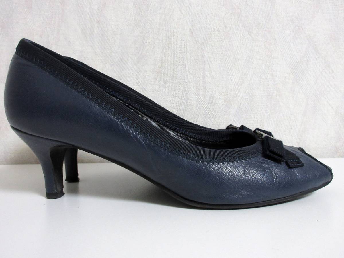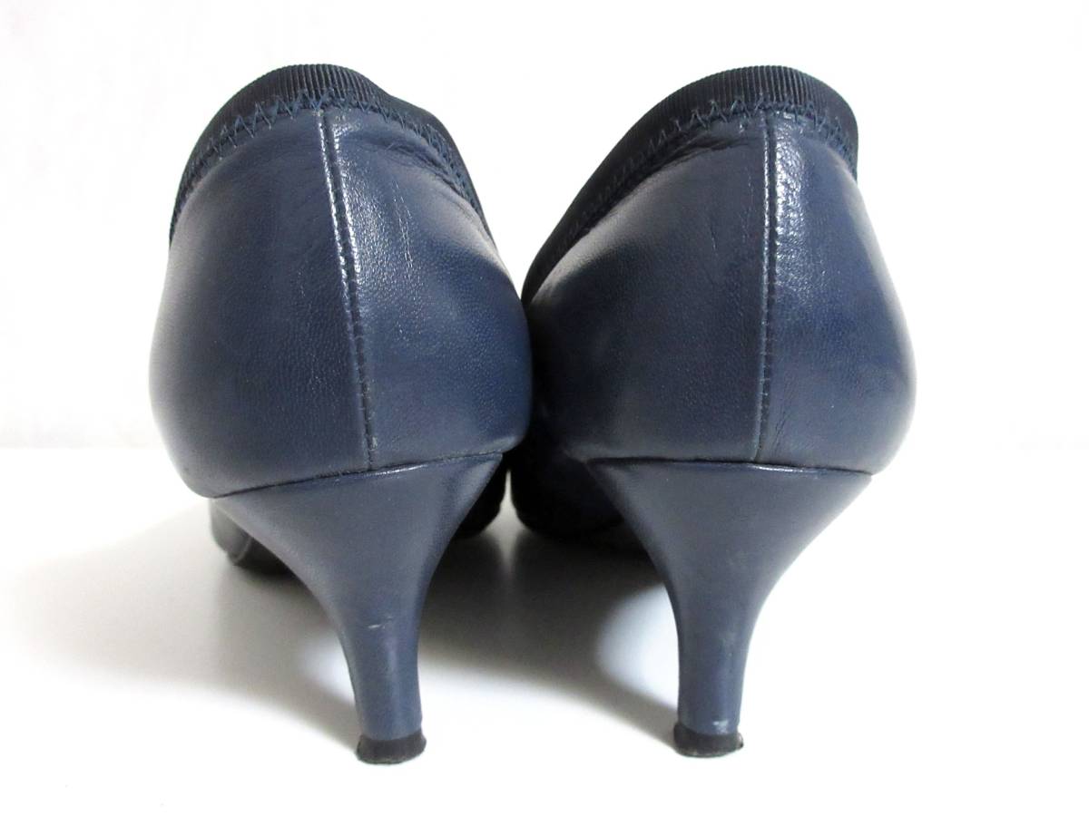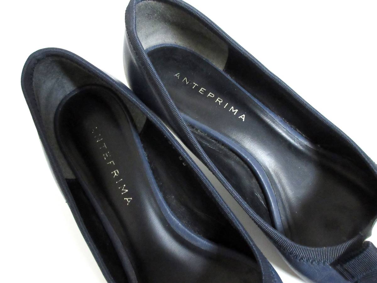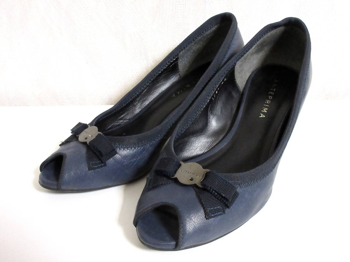 アンテプリマ ANTEPRIMA レザー パンプス オープントゥ 紺 ネイビー 23 北1404