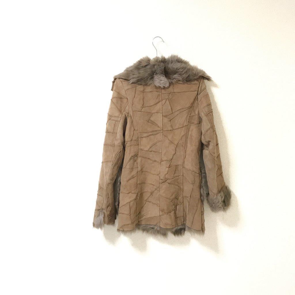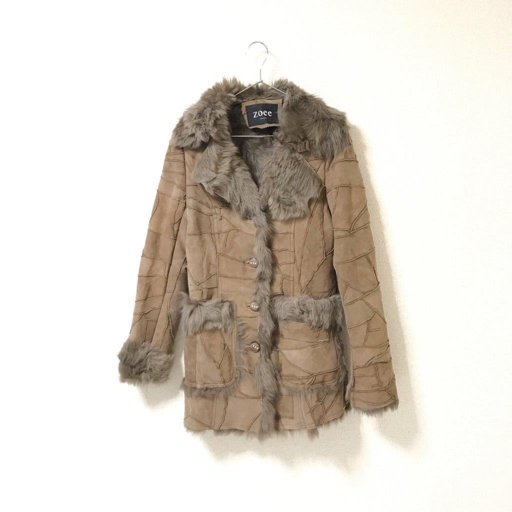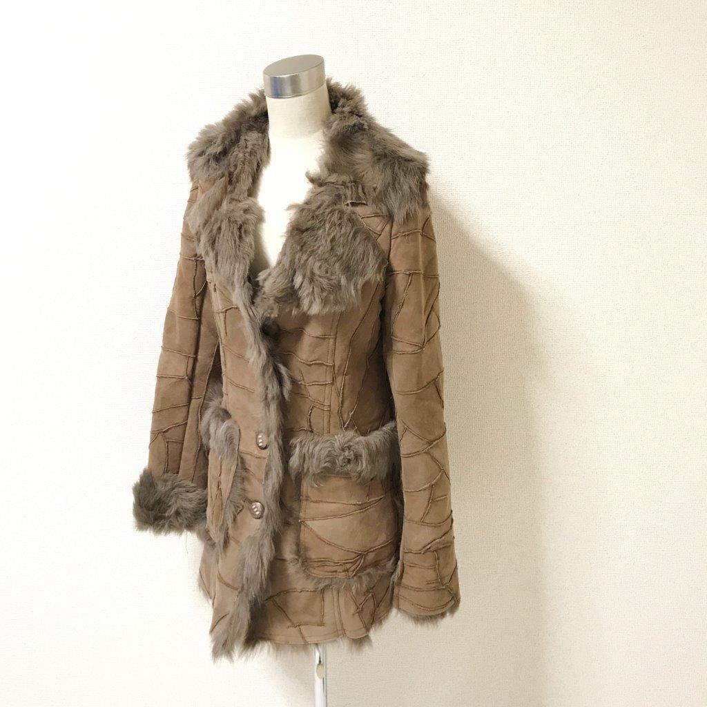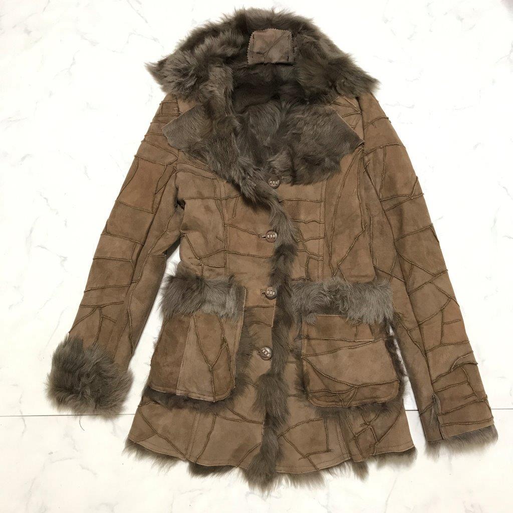 ★zoee collection★レディース ラム ムートン パッチワーク風 切り替え ハーフ コート 本革 レザー size L ファー ブラウン 管:B:02