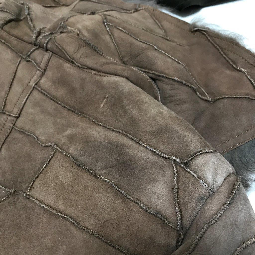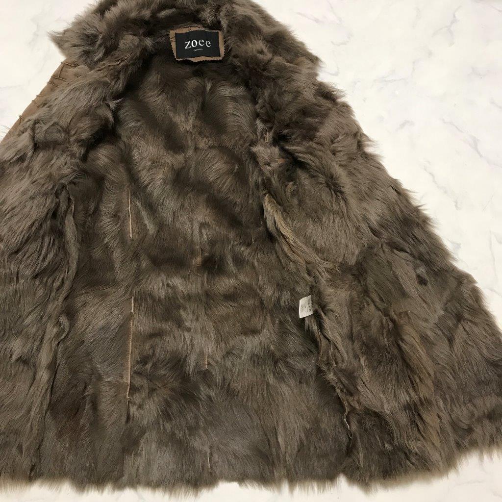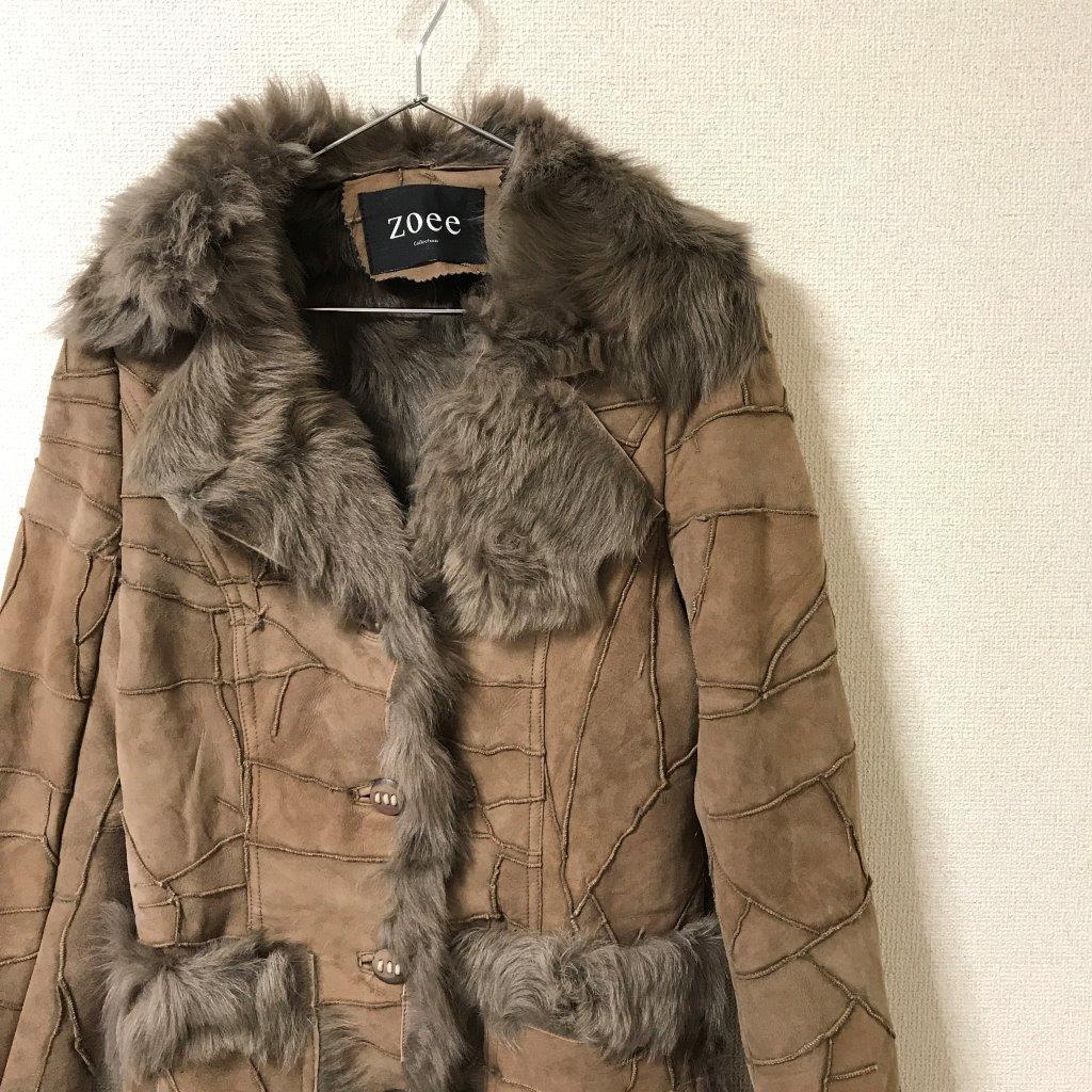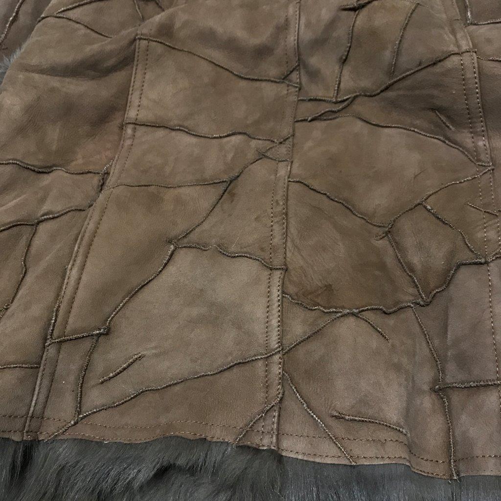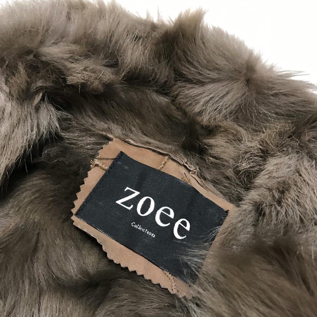 ★zoee collection★レディース ラム ムートン パッチワーク風 切り替え ハーフ コート 本革 レザー size L ファー ブラウン 管:B:02
