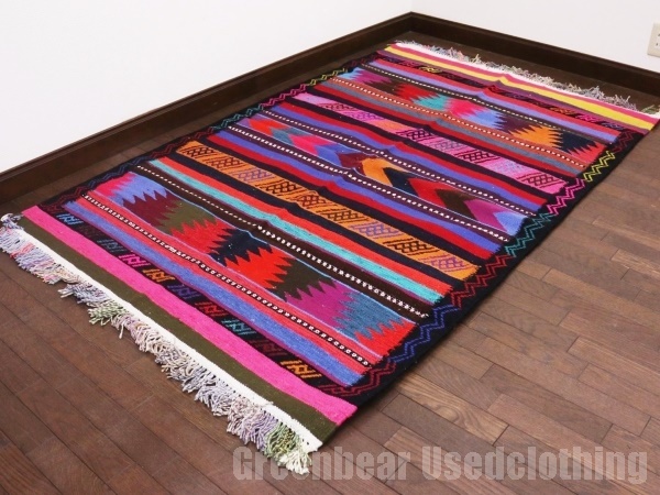 RAGM049◆アウトドア用にも◎ 水洗い可 大判キリム キャンプ 屋外推奨 ガレージ グランピング