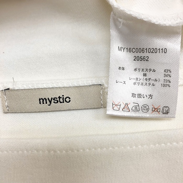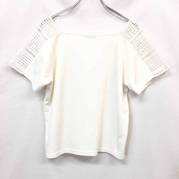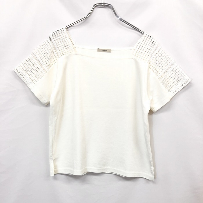 商品タイトル | mystic ミスティック - レディース スクエアネックショルダーレースTシャツ カットソー 無地 半袖 ポリ×綿×レーヨン オフホワイト 白系 |