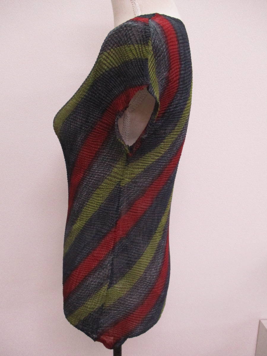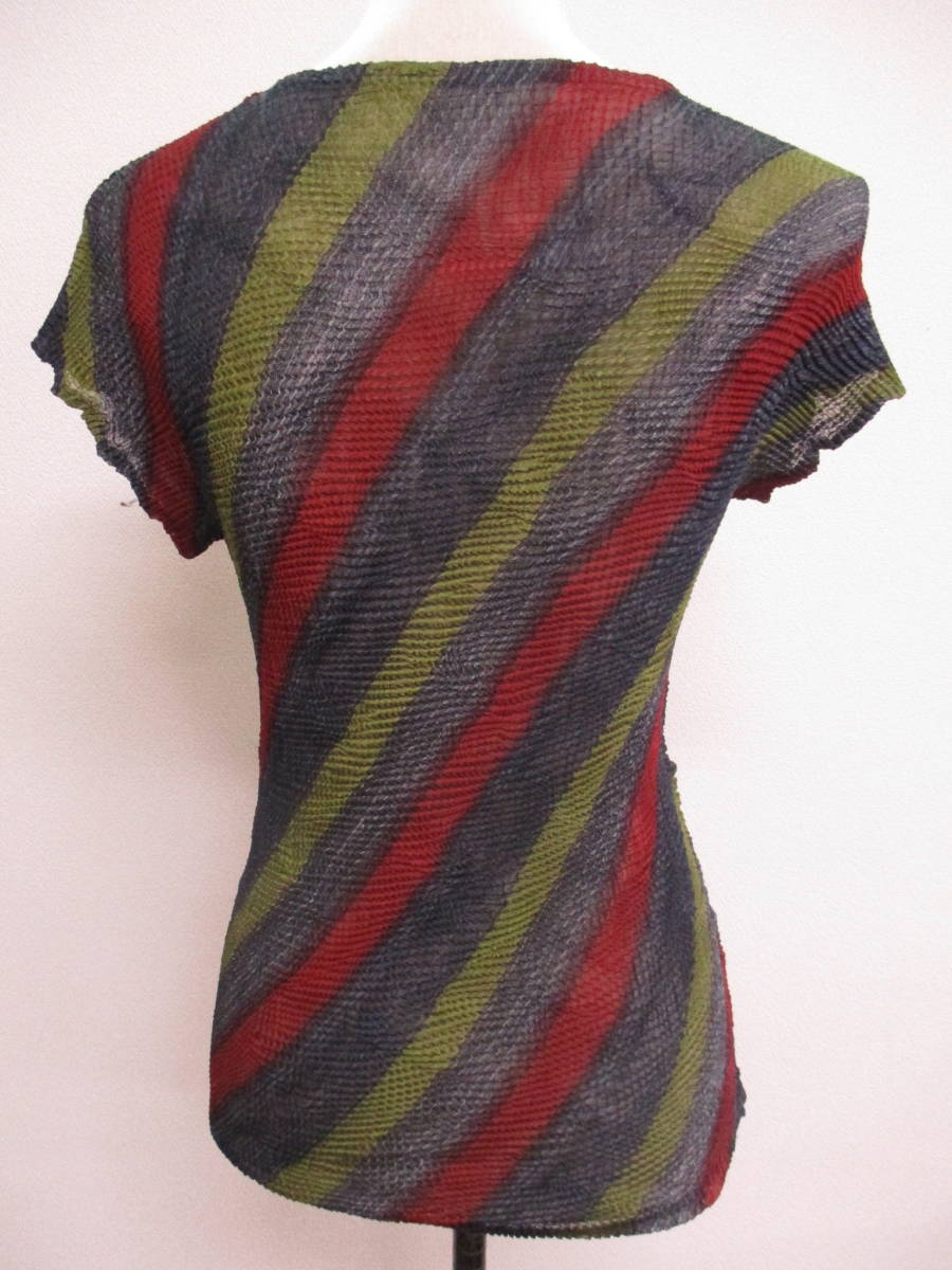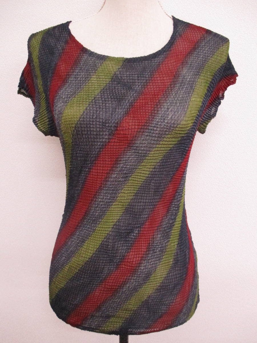 ◇190【送料無料】REDMOON レディース シアートップス フレンチスリーブ カットソー S~L相当 斜めストライプ マルチ 透け感 伸縮性◎