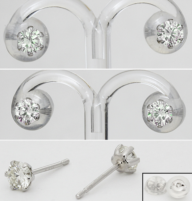 綺麗 スマート☆ダイヤ 0.30ct 0.15ct + 0.15ct H&C ピアス Pt900 プラチナ 一粒 スタッド 男女兼用♪鑑別カード付・送料込 | ||