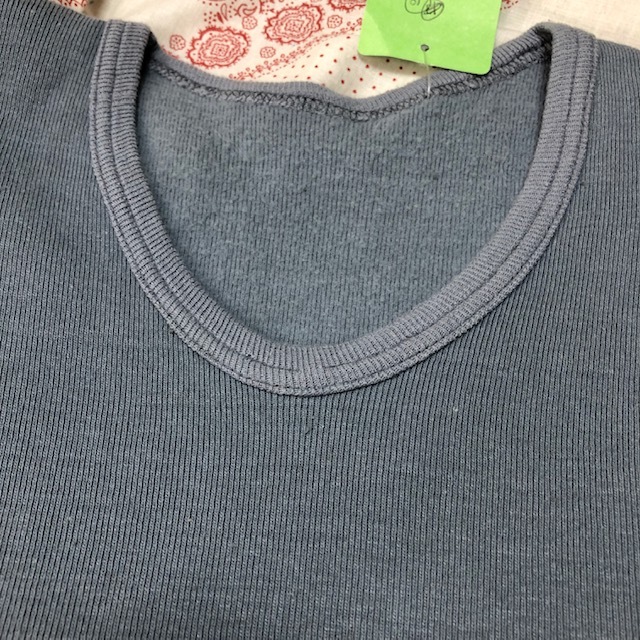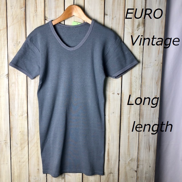 ●商品説明・・・ヨーロッパより入荷のユーロusedになります。70年代~80年代頃のヴィンテージカットソー(Tシャツ)です。伸縮性のあるリブニットのような織の生地で、ややロング丈になっています。色はグレーです。表記はないですが素材はおそらくBaumeolle(コットン)で、ヨーロッパのヴィンテージTシャツ特有のコットンニットのような伸縮性のある柔らかかな生地質・表記サイズよりタイトめなシルエットになっています。