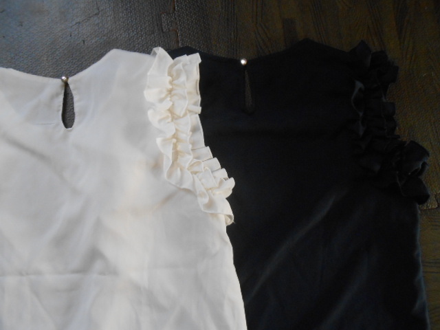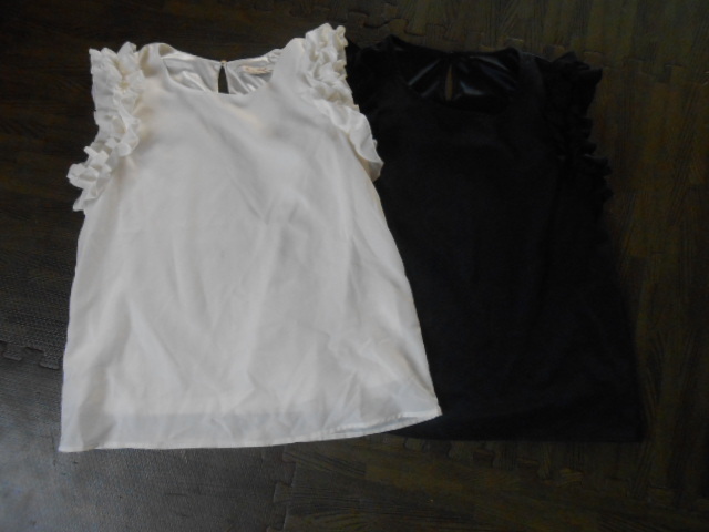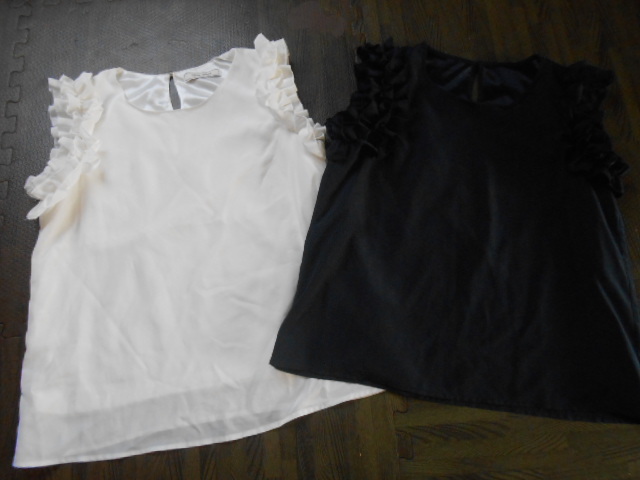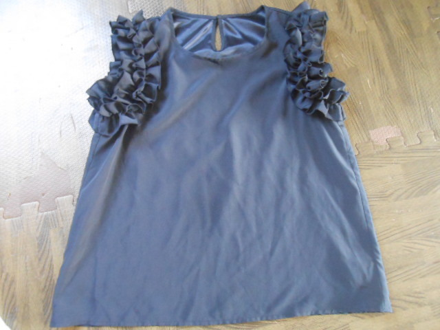 こちらはLサイズ、ポリエステル100%のサラサラ生地の袖フリフリブラウスです。