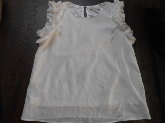★お袖フリフリノースリーブトップス白&紺★L  ポリエステル100% 美品