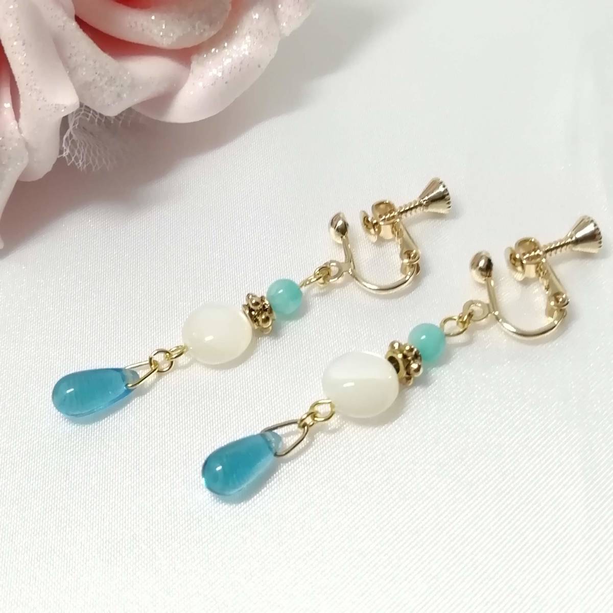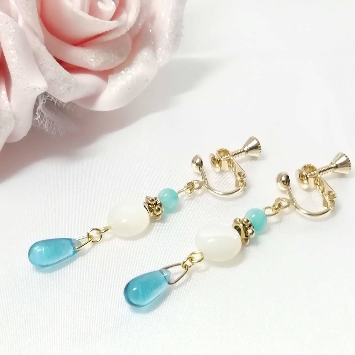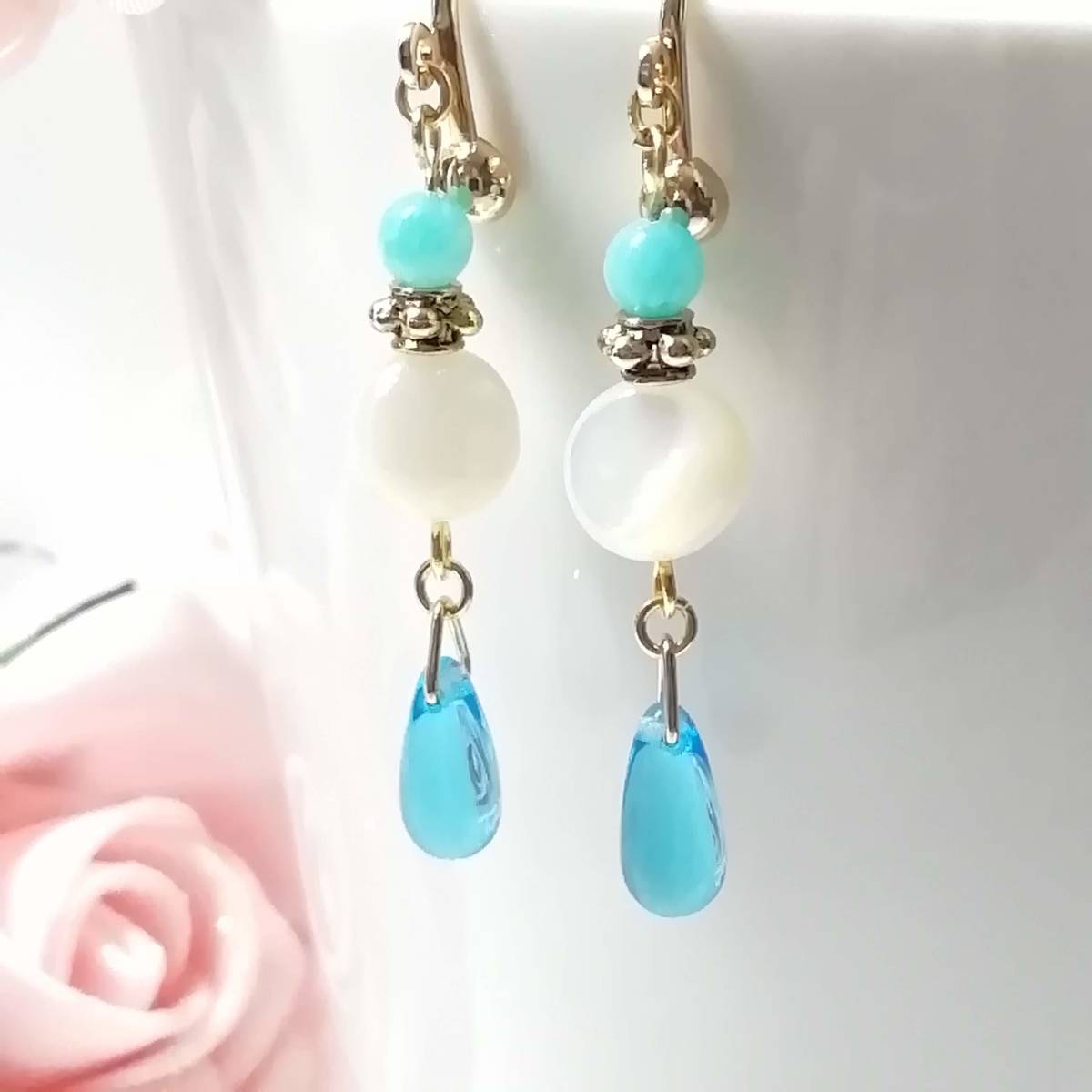 | ★商品内容★ アクアマリン雫とホワイトシェルのハンドメイドイヤリング★アクアブルー/上品/ゴールド/雫/シェル/水色/チェコ/爽やか/短め/アマゾナイト アクアブルーと発色の良いペルー産アマゾナイトのミントブルー、 ホワイトシェルのコントラストが、爽やかで上品な印象のイヤリングです。*・.☆**・。**.☆*・**。・ 短めサイズで、普段使いはもちろん、 オフィスやお洒落のワンポイントにも最適です*・**.☆**.*・。☆*・**。 【素材】 天然石アマゾナイト(天河石)ペルー産4mm 天然石ホワイトシェルフラットナゲット7mmx9mm チェコビーズティアドロップアクアマリン10mmx7mm ピューター製メタルスモールサタンリング5mmx3mm カンより垂れ下がる長さは、約3.7㎝です。 Eー715 【天然石豆知識】 ◆アマゾナイト(天河石) ペルー産 石言葉 『聖なる愛情』 古くから、希望と幸運を引き寄せる「希望の石」とも呼ばれ珍重されてきたアマゾナイトは、 夢や自己の実現をサポートしてくれる働きがあるといわれています。 「冒険と夢の石」ともいわれ、見果てぬ夢を追いかける時には、それを実現させるための努力に力を貸してくれるのだそうです。 ★注意事項★ ***~ご購入前に必ずお読み下さい~*** *・*・*落札後について*・*・* *落札後4日以内にお手続き、ご連絡が無い場合は落札者都合で削除致します。 *発送日指定・ご入金の予定が1週間以上先をお考えの方は、入札の前に質問よりご連絡くださいませ。 予めご了承の上、ノークレーム・ノーリターンでお願い致します。 *・*・*商品について*・*・* *一点一点心を込めて作っておりますが、手作りなため多少の歪み等あるかもしれません。 手作りの味わいと、世界で一つだけの作品とお考えいただければ幸いです。 *デリケートな商品ですので、強く引っ張ったりすると破損する事もあります。 お取り扱いにはご注意ください。 *ご覧のPC、スマホによっては画像と実物の色味が多少異なる場合があります。 *基本イヤリング金具は跳ね上げネジ付き金具にて作成しております。 **ご希望によりピアスへの変更も承っております。 【フックピアス…無料/キャッチピアス…別途追加料金120円が必要です】 *その他…樹脂ノンホールピアス(無料)・カン付き樹脂ノンホールピアス(別途追加料金20円が必要です)にも変更をお受け致します。 ~ご注文の際にメッセージ欄よりお申し付け下さい~ 尚、金具変更のご希望が無い場合は、掲載された写真の金具にてお送り致します。 *金属アレルギーや化学物質アレルギーなどへの対応はしておりませんので、ご心配な方はご遠慮下さいますようお願い致します。 *永くご愛用頂くために、ご使用後は柔らかい布等で軽く拭いてください。 *・*・*プレゼント用梱包のご要望もお受けいたします*・*・* *その際は、梱包費用が別途で必要となりますのでご注意ください。 また、ご希望の梱包タイプによって、発送方法が変わりますので、送料が別途必要となります。 プレゼント用梱包タイプ 【袋→100円】 発送方法【クリックポスト(送料無料)】 プレゼント用梱包タイプ 【箱→200円】 発送方法【レターパックプラス(別途520円)】 袋タイプは【合計100円の追加料金が必要です】、箱タイプは【合計720円の追加料金が必要です】となります。 ◆ご希望の場合は、必ず商品ページをウォッチリストに登録した上で落札前に質問にてお問合せ下さい。◆ ◆ご希望を承り次第、一度出品を取り消し、プレゼント用梱包費用、送料などを追加した金額へ変更し、再出品致します。◆ *再出品後に再度検索して頂く手間が省けますため、プレゼント梱包をご希望の場合は必ずウォッチリストへのご登録をお願い致します。 金額変更後の再出品から3日以内に落札されなかった場合、誠に勝手ながら購入する意思がないとみなしまして、元の金額へ修正致します。 また、修正後、再度プレゼント用梱包のご希望のお問い合わせを頂きましても、お断りをさせていただきますのでご注意ください。 ご不明な点がございましたら、落札前に質問よりお願い致します。 ***ご質問について*** *ご購入前にお願い致します。 日中は仕事をしておりますので、ご返事が直ぐに出来ない場合がございます。 出来る限り早い対応を心がけますが、ご了承ください。 また、発送までには、お振込み確認後、翌日の発送を心がけておりますが、仕事の都合により2~3日程かかる場合がございます。(その際にはナビにてご連絡いたします) お急ぎの場合は、極力対応いたしますが、場合によっては対応致しかねる事もあります。ご了承下さいませ。 | |||