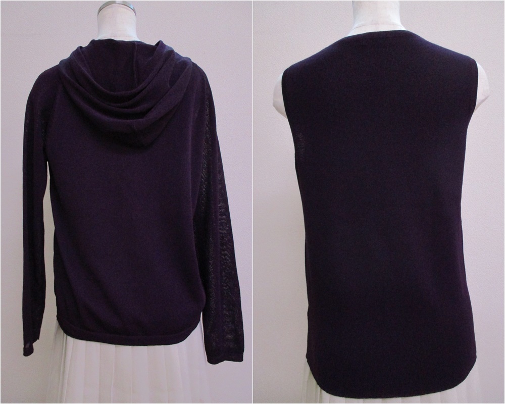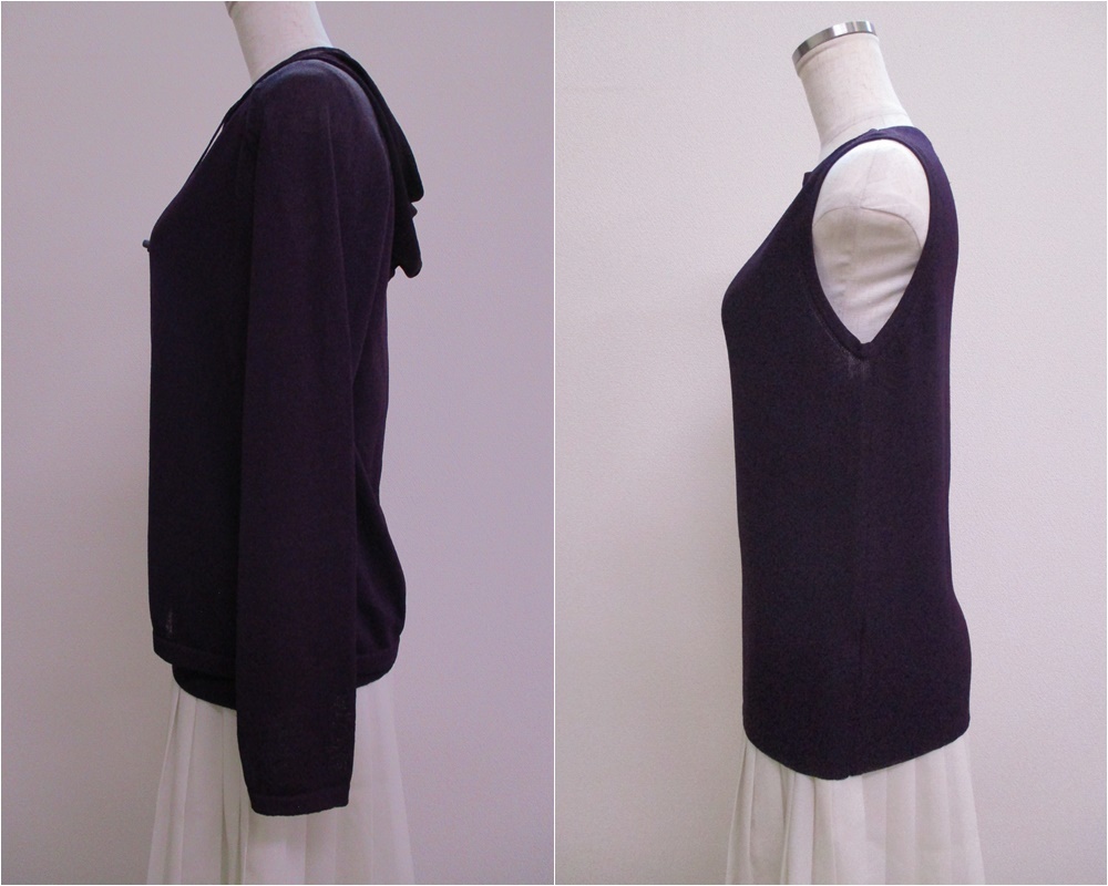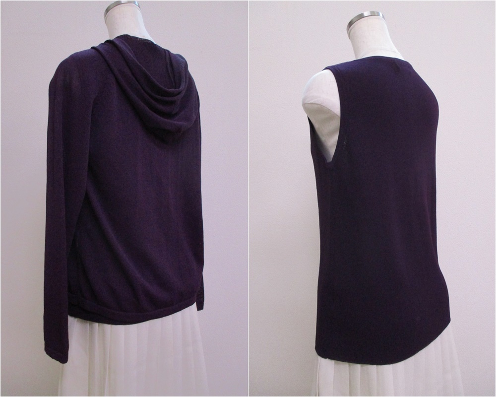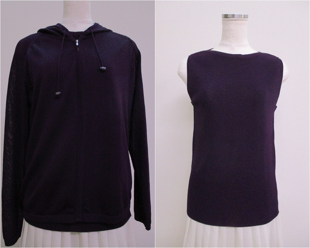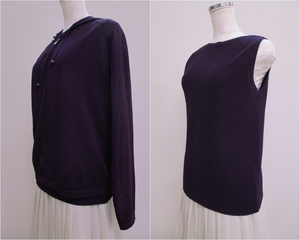 △402【送料無料】BASHECINQ TRICOT バッシュシンク アンサンブル ニット フルジップパーカー タンクトップ M ダークパープル 透け感