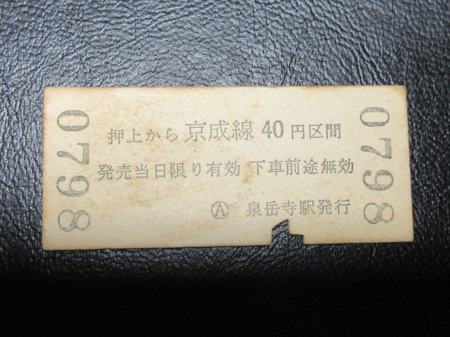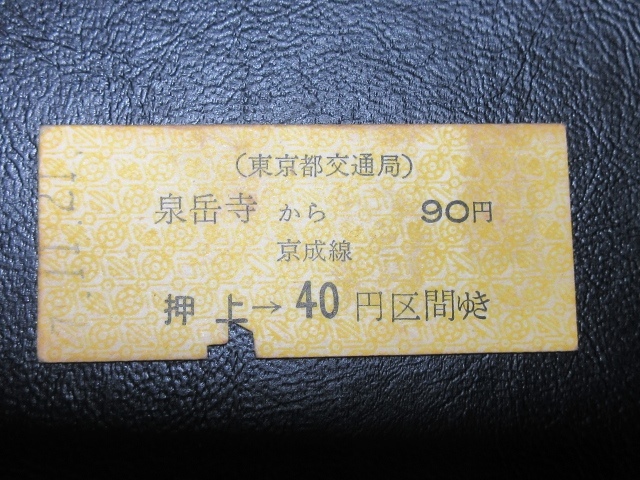 国鉄乗車券・硬券『昭和47年11月21日「東京都交通局」泉岳寺・押上→京成線40円区間・矢印式乗車券』キップ切符・コレクション★JNR741