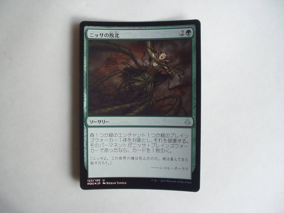 B知人の委託品です。 画像が全てです。 MTG ニッサの敗北/Nissa's Defeat foil 日本語1枚です。 何語だか分らない時があります。 エキスパンション、外国語(言葉)は画像で確認をお願いします。 カードはプレイしてます。 程度はカードに目立つ擦り傷、傷、シワ、折れ目、ペン跡のようなキズ、汚れ、角や端に傷、黒枠にキズ、などのキズが結構あります。 カードからタバコ、香水の匂いがします。 カードが丸まっていたり反ってたりしています。 気が付かない部分がありますので程度を気にする方は入札をご遠慮下さい。 程度はボロ、ジャンクです。 コレクションには向きません。 何か起きた場合には自分では対応が出来ませんのでご理解頂ける方のみ入札をお願いします。 普通郵便で発送します。 郵便事故や郵便破損が起きた場合には保障できません。 ノ-クレーム、ノーリターンでお願いします。 ●クロネコメール便は2015/3/31で発送が出来なくなりました。ご了承下さい。
