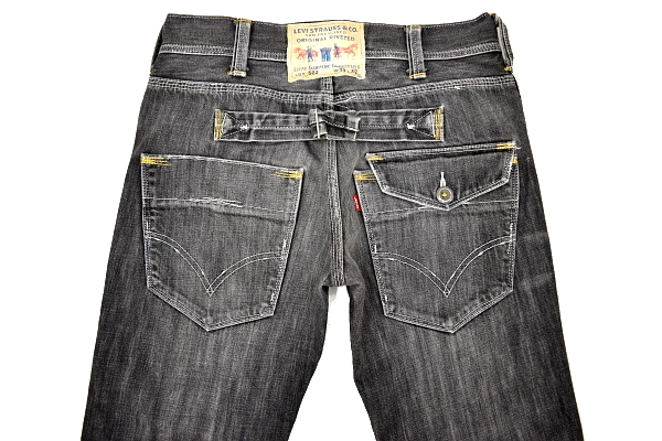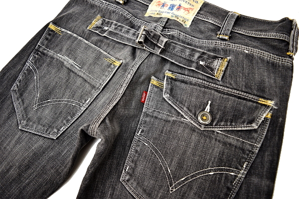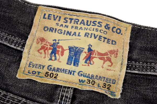 J9184★美品★Levi's リーバイス XM502-0001★人気ブラックデニム ヴィンテージ&クラッシュ加工 シンチバック付き ストレートジーンズ W30