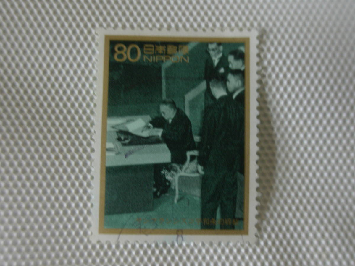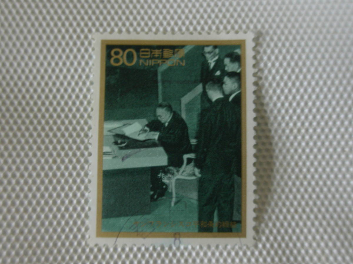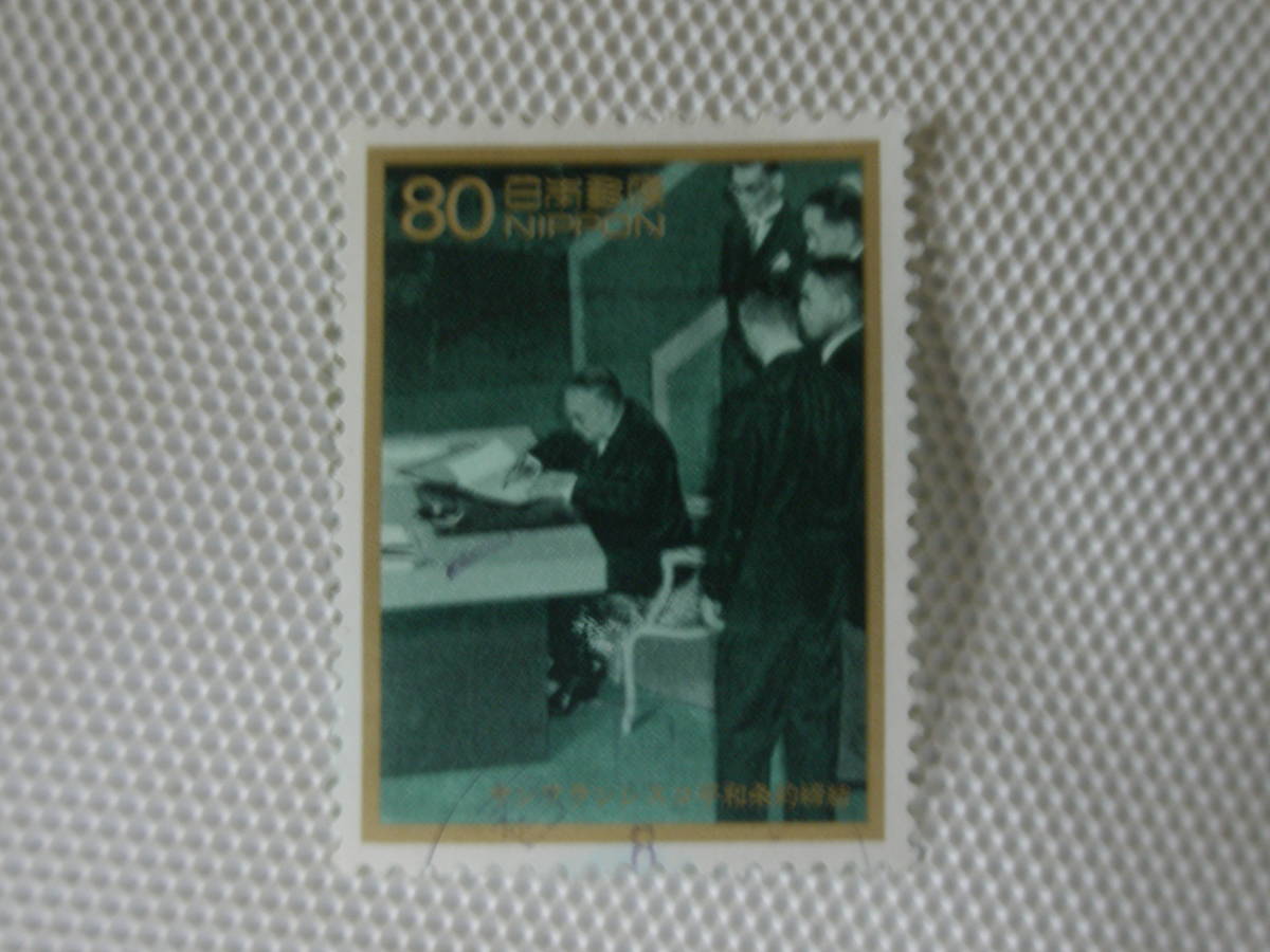 1996-1997 戦後50年メモリアルシリーズ 第1集 1996.4.5 b サンフランシスコ平和条約締結 80円切手 単片 使用済