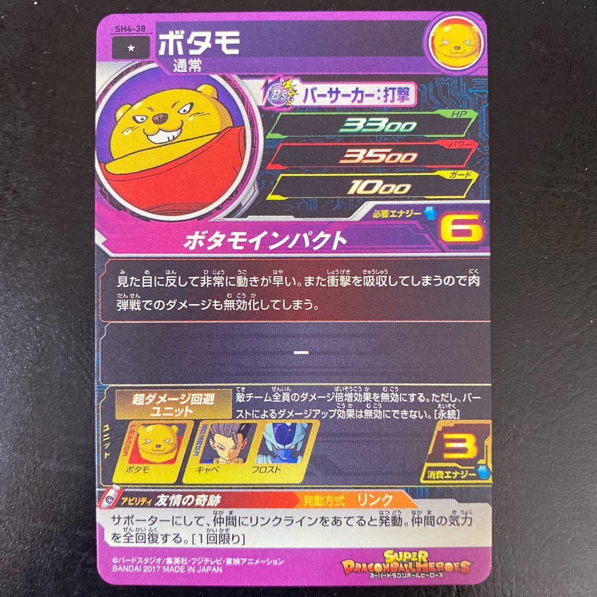 SH4弾コモン/ ボタモ(通常)/ SH4-38/ 技:ボタモインパクト/ スーパードラゴンボールヒーローズ/ レアリティ:☆/ 2017 BANDAI