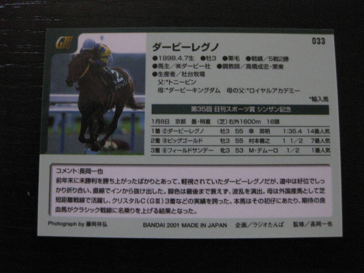 ★競馬★ダービーレグノ サラブレッドカード2001 033 バンダイ