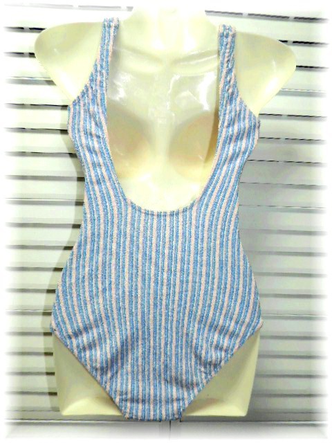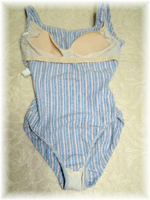 =委託品= 中古品はクリーニング又はホームクリーニング済です。 新品・未使用品については現状のお渡しとなります。 保管の際のシワがございます。 ■■商 品 ラ ン ク■■ A0新品・未使用品です。 A1訳アリ新品・未使用品です。 B0未使用品に近い中古品です。 B1目立ったシミ・汚れ等が無い一般的な中古品です。 B2使用感(ヨレ)・毛羽立ち等あります。 B3薄め・小さめのシミ・汚れ・傷等があります。 B4目立ったシミ・汚れ・傷等があります。 B5ジャンク品です。 *注:感じ方には個人差がございます。 【レベル:B1】 目立ったシミ・汚れ等見当りません。 ≪タグ表示≫ サイズ:9号/M ≪平置きサイズ≫ 多少の誤差はご容赦下さる様お願いします。 身幅:約37cm ウェスト:約26cm ヒップ:約30.5cm 着丈:約30cm(背側中央部) ≪素材≫ アクリル80% ナイロン15% ポリウレタン5% ≪色・柄≫ ブルー×ピンク×ホワイトストライプ 付属パッド取り外し不可 ≪お願いとご注意≫ ・新品・未使用品でも一度は人手に渡った物ですので完璧を求める方はご入札をご遠慮下さい。 ・お振込み手数料はご負担下さいます様お願いします。 ・仕事・家事の合間で作業をしておりますのでお急ぎの方のご入札をご遠慮下さい。 ・ご入金確認のタイミング(夜の確認)により発送が1~2日程遅れる場合がございます。 ・頂いた個人情報はお取引後すみやかに削除させて頂きます。 ・土日祭日の発送は郵便局都合によりお休みします。 ・フラッシュやPC環境により色が違う場合がございます。 ・喫煙者おりません。ペット(猫)がおります。 ・評価はご指示がない限り商品受け取り完了のお知らせ後にさせて頂いております。 ≪不要の方はお手数おかけしますがメッセージをお願いします。≫ | |||