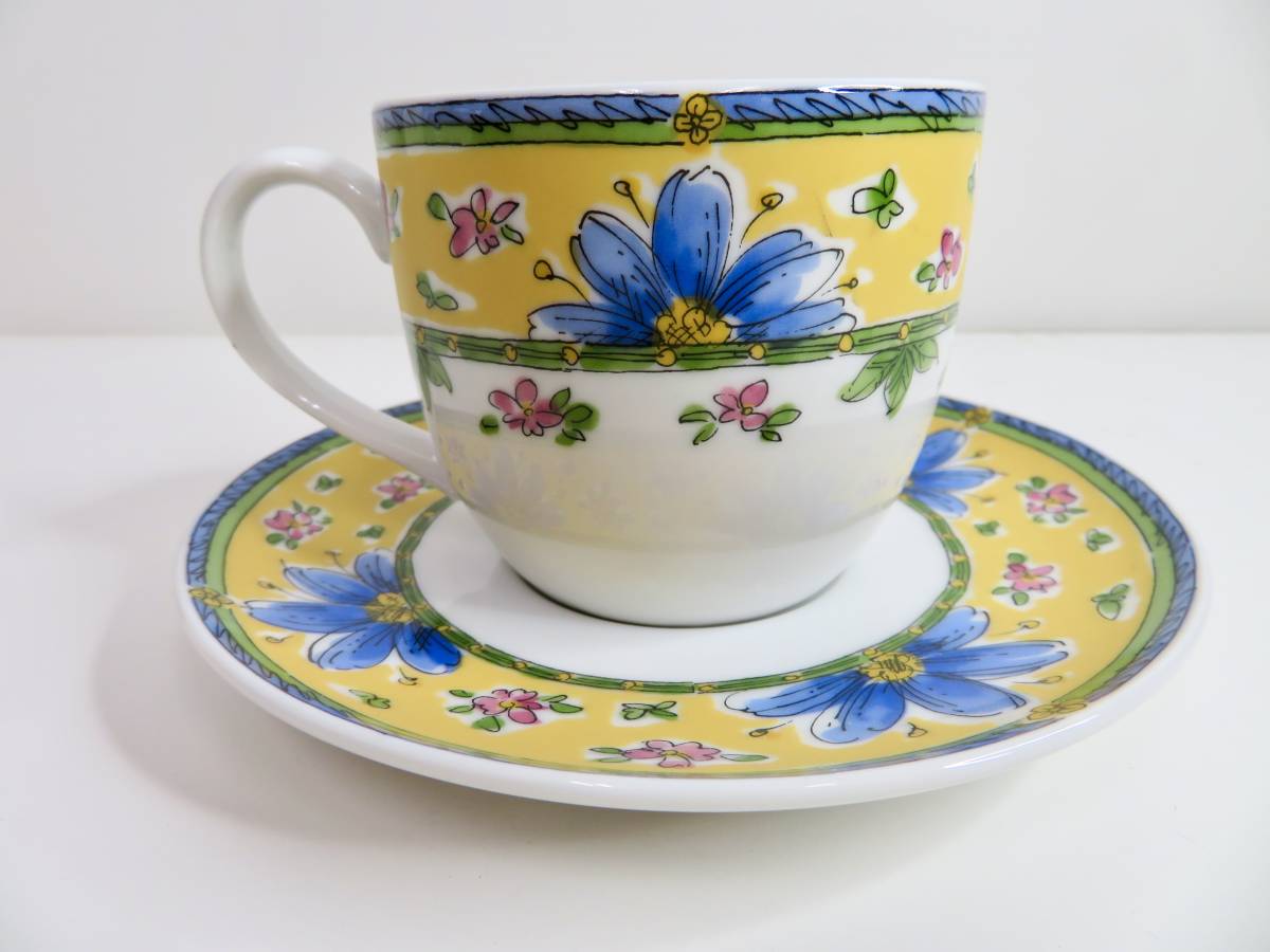 色鮮やかなデザインのコーヒーセットです。デザート皿も素敵です。