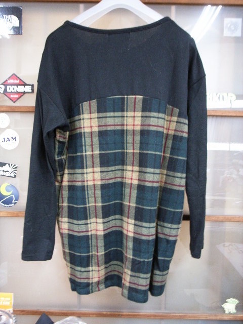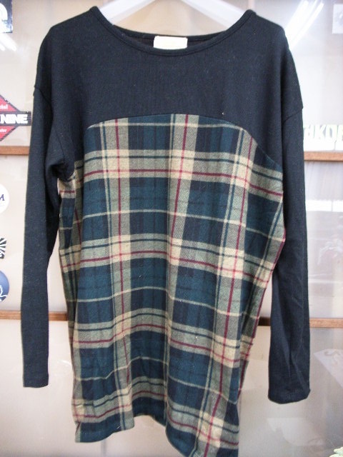 W closet wears ink/ダブルクローゼット フロント切り替え長袖チュニックブラックxグリーン フリーサイズです。実寸で着丈約68cmX身幅約53cmX袖丈約49cmです。中古品で目立たない汚れ、シミ有ると思われます、写真で判断の上、ご理解有る方の御入札お待ちしております。