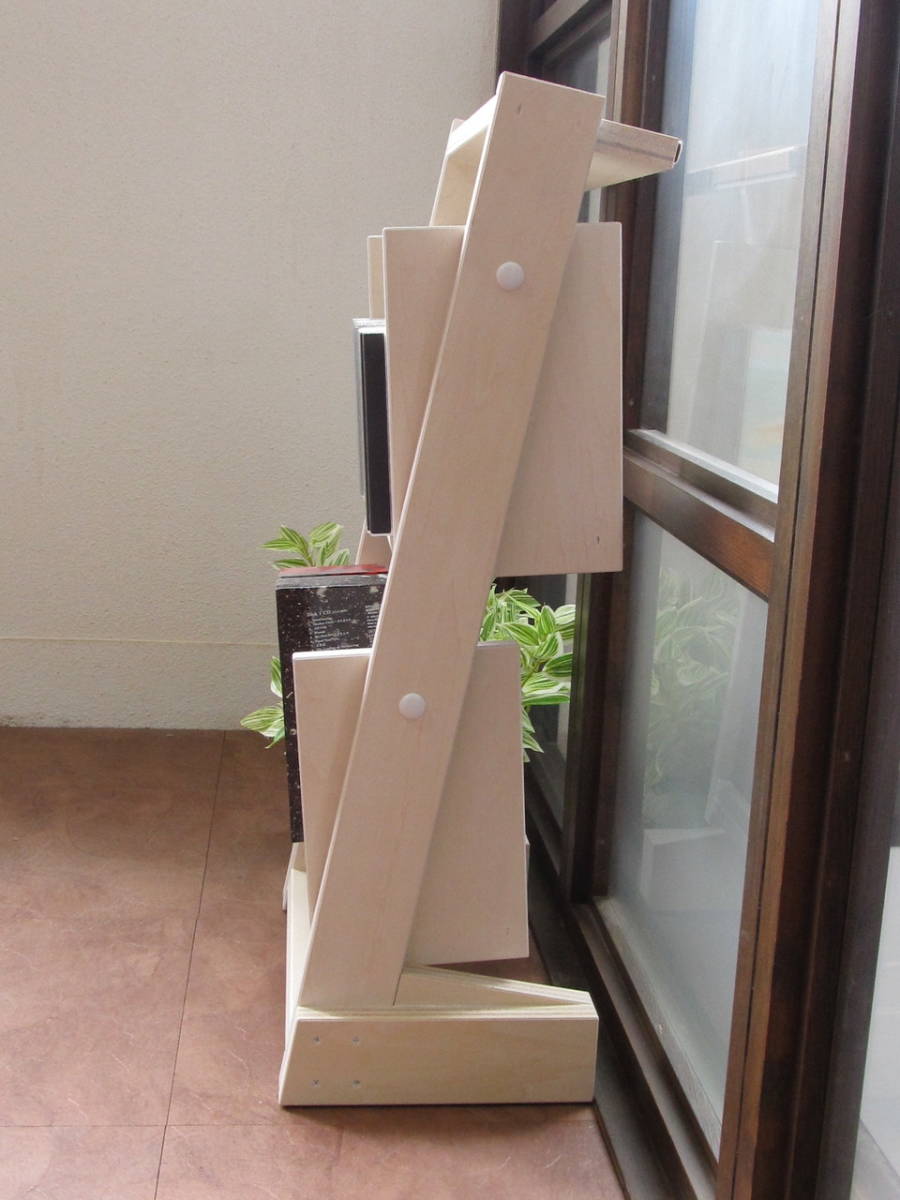 *場所を選ばない、部屋の片隅や棚と棚のチョットしたスペースに、間仕切り飾棚に、デスク+テーブルのサイドシェルフに、 10度の傾斜で安定設置。