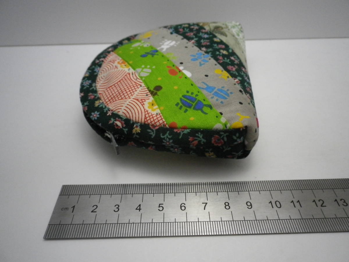 「昆虫花柄ポーチ~緑色系・パッチワーク」ハンドメイド・未使用【送料無料】「おかあさんのお針箱」00200259