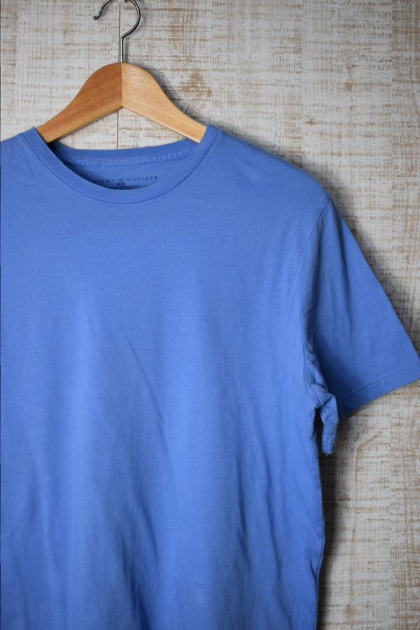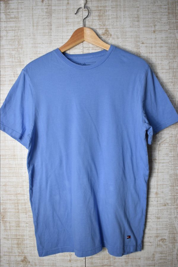 ●US USED TOMMY HILFIGER トミーヒルフィガー Tシャツ ロゴ刺繍 ブルー青【M】