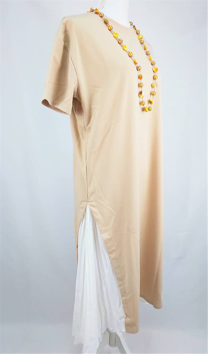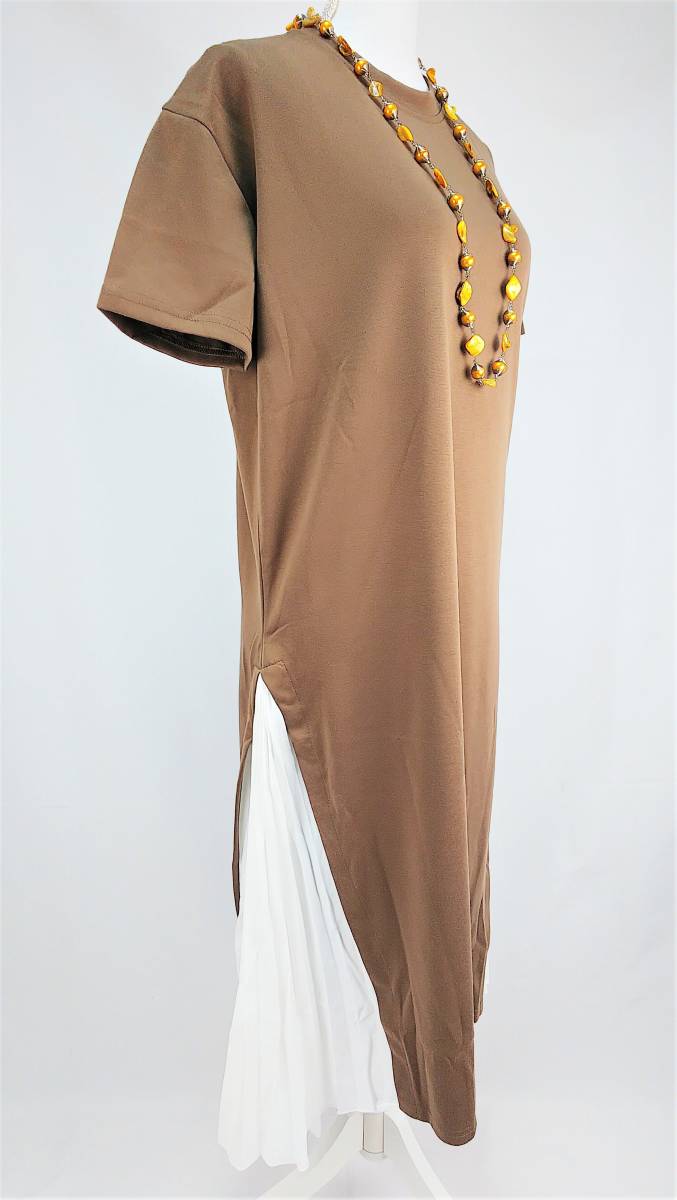 | 当方のオークション商品をご覧頂き有難うございます。 ご落札の際は誠心誠意対応させていただきますので 宜しくお願い致します。 ご質問がございましたらお問い合わせください。 【商品の説明】 素材 :コットン65% ポリエステル35% 透け感 なし(プリーツ部は若干透け感あり) 裏地 なし 生地の厚さ 普通 生地の伸縮性 あり 寸法:《フリーサイズ》 着丈 112cm 袖丈 17cm 肩幅 50cm バスト 108cm ※寸法は、若干の誤差はご了承下さい。 カラー: ①ベージュ ②グレー ③ブラウン ④ダークブラウン ※落札後、取引メッセージにてご希望のカラーをご連絡お願い致します。 動くたびにふんわり揺れるサイドプリーツが上品さと華やかさを 演出してくれます。 伸縮性のあるカットソー素材でリラックス感のあるワンピースに サイドにプリーツを合わせたことで華やかな感じをプラス。 飽きのこないベーシックカラーの為、普段使いしやすいです。 またちょっとしたお洒落が必要な場面でも使える一枚です♪ | |||