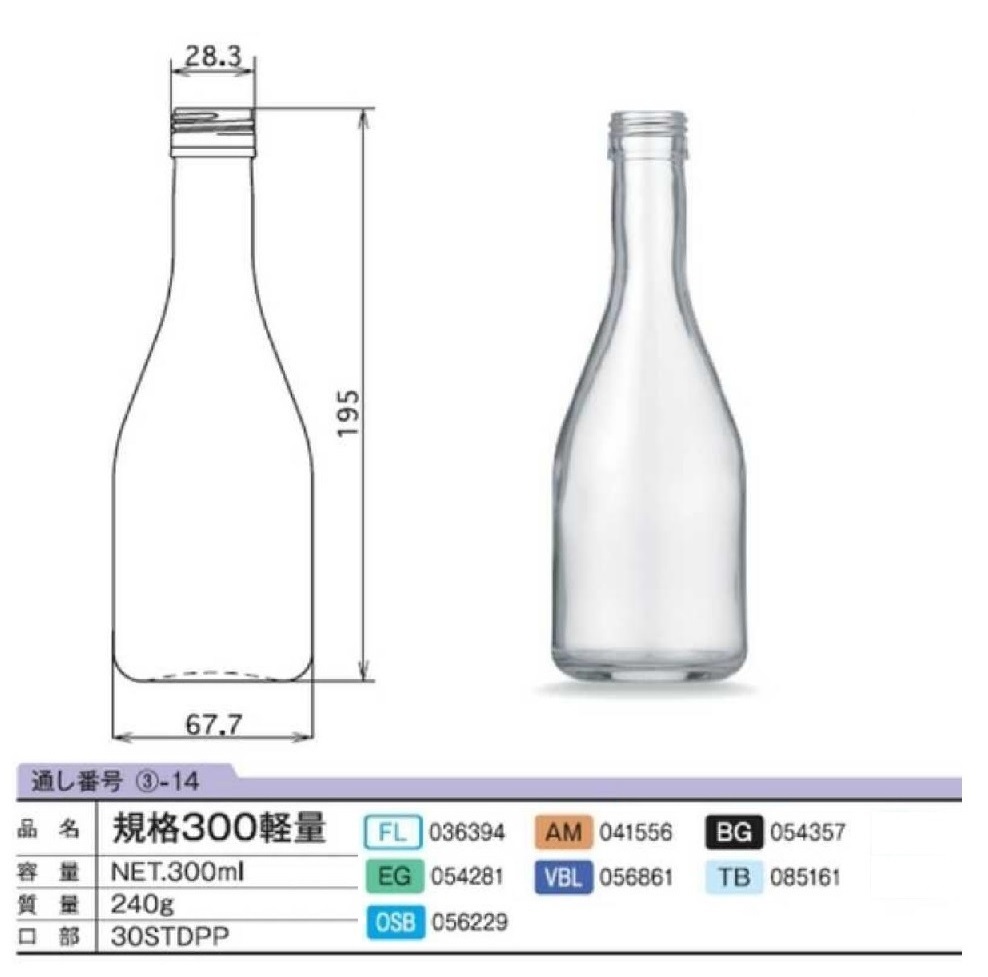 未使用新品300mlガラスびん 薄青 24本入り【量り売り・小売り・小分け用に!】一本あたり91.7円!! 黒キャップ付き